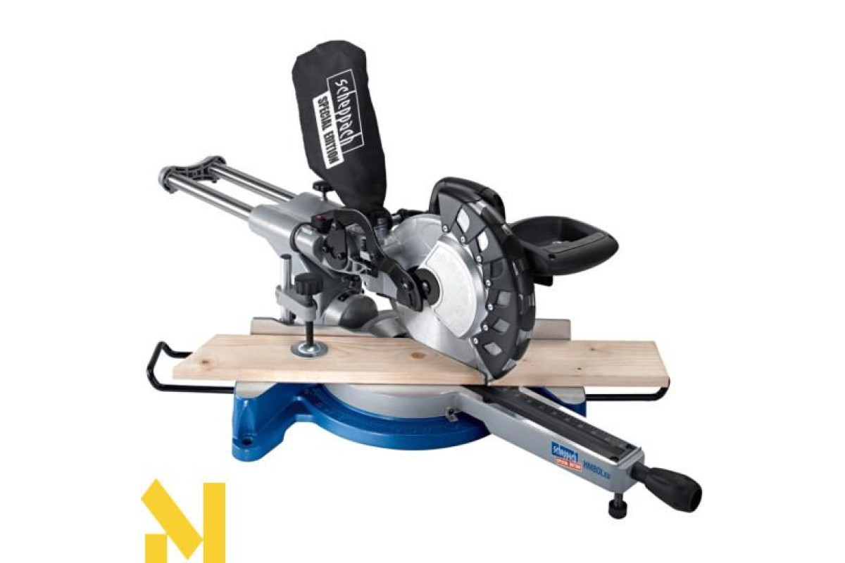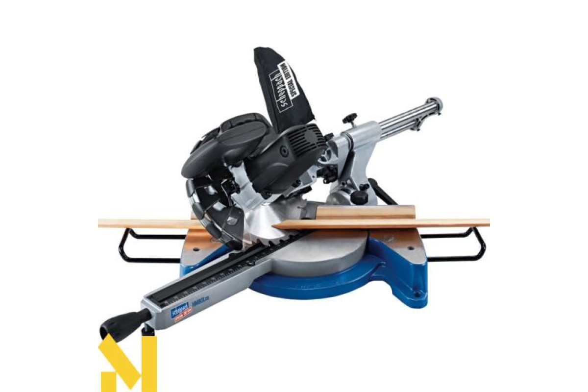 Перевагою пили торцювання Scheppach hm80lxu є протяжка. Це означає, що пильний диск встановлений на дві рейки, які розташовані паралельно один одному. За рахунок цього доповнення диск може вільно рухатися вперед і назад і пропилювати довгі заготовки.