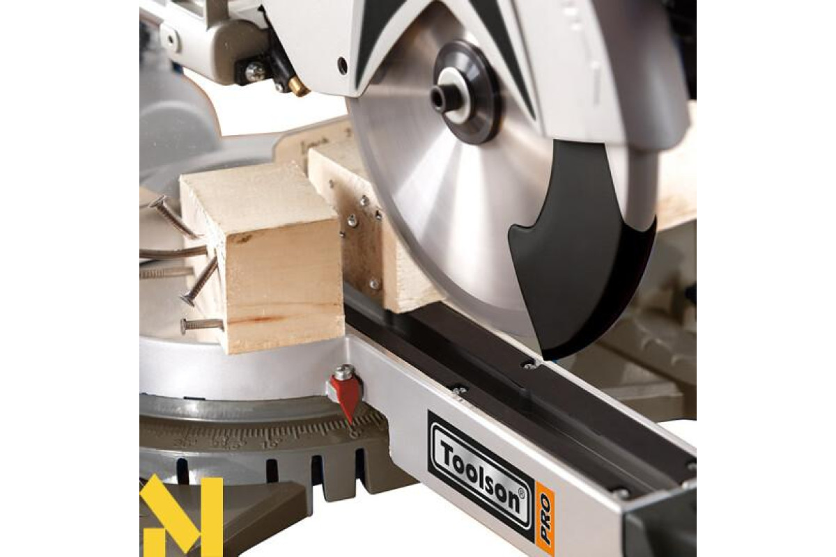 Торцева пила Toolson KGZ2550PRO - високопродуктивна пила торцювання для обробки деревини, пластика, ламінату, м'яких сплавів металів. Модифікація виконана з якісних комплектуючих і може застосовуватися в столярному і меблевому виробництві, при розкрої будматеріалів. Бездоганна заводська збірка мінімізує поломки. Інструментальна пила торцювання KGZ2550PRO від Toolson є однією з кращих поперечних пив на ринку. Його можна використовувати для різання м'яких і твердих порід дерева, пластмас, кольорових металів і зі спеціальним направляючою шиною навіть для стали. Інтегрований лазер полегшує різання і прискорює роботу. Опорний стіл з фрезерованного алюмінію забезпечує заготівлях стійку опорну поверхню і забезпечений збоку висувними полками, які оснащені шарнірними упорами. Таким чином, виробництво заготовок в серійному виробництві приносить задоволення. Функція витягування дає ріжучої пилі ширину різання до 305 мм, що дозволяє вирішувати багато звичайні завдання. Регулювання кута нахилу і кута нахилу ще більше розширює спектр застосувань. Для роботи без пилу оснащений мішком для пилу, на його місці, але також може бути підключений відсмоктування.