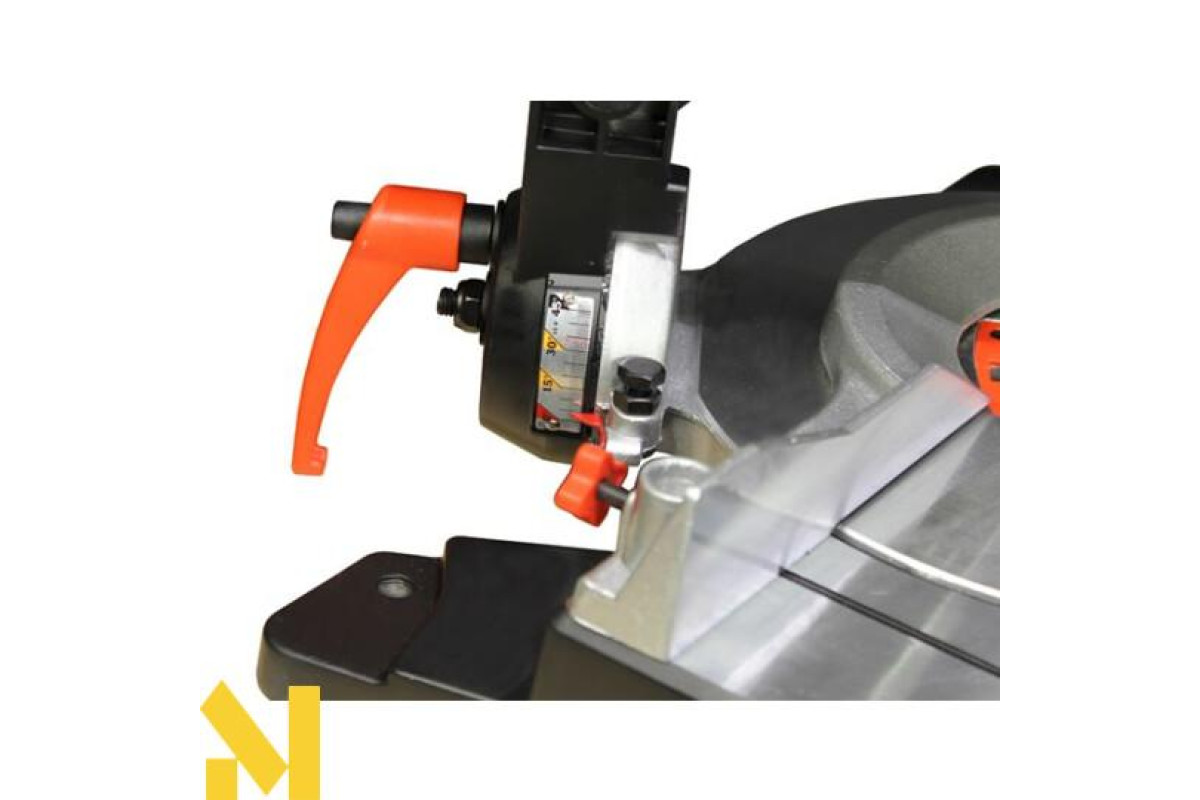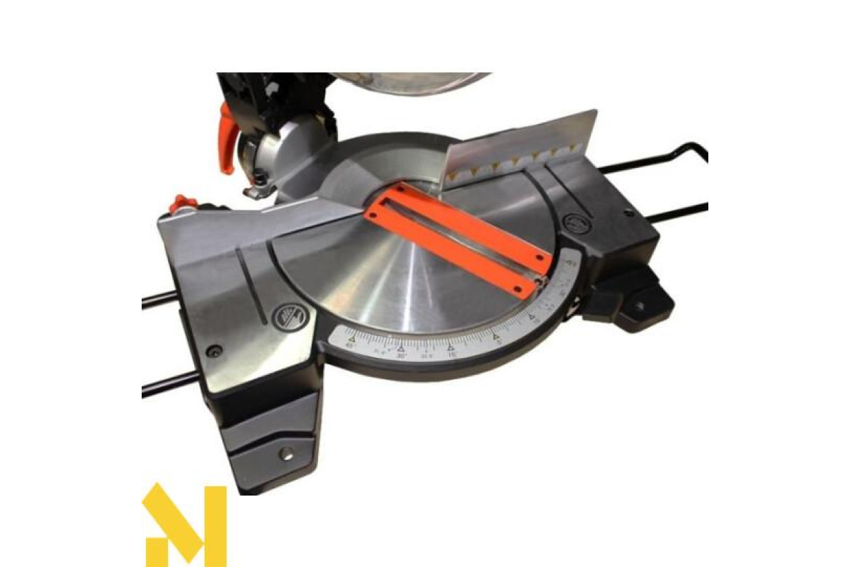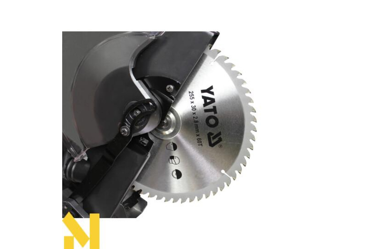 Встановлено вся конструкція на містку і міцну станину, що має всі необхідні елементи для підвищеної стійкості. Крім того, станину обладнали поворотним елементом для того, щоб розпили за допомогою Yato YT-82170 в торцевих напрямках виробляти під кутами. Повернути цю частину столу ви зможете на кут до сорока п'яти градусів, при цьому, в обидві сторони. На столі передбачили наполегливу лінійку для зручності розміщення матеріалу, що розпилюється. Якщо ж матеріал досить великий і громіздкий, то в конструкції передбачено наявність расширителей бази з боків столу. На такій підставі ви без праці помістіть будь-яку деталь для розпилу.