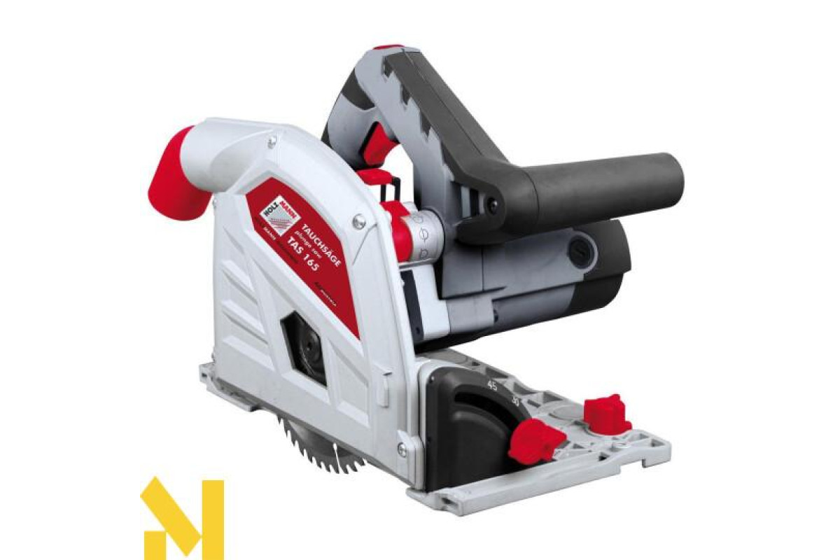 Точне випилювання прорізів. З цим завданням впорається і звичайна циркулярка, однак HOLZMANN TAS 165 все зробить точніше. На підошві у неї є цілики, які дозволяють точно позиціонувати пилу (диск вріжеться строго по лінії розмітки). Ще один цілик завдано навпаки ріжучої кромки оснастки. Орієнтуючись на нього, ви зупините пилу в призначеній точці, не залишивши слідів пиляння за межами отвору. Можна пиляти близько до стіни. Це вдається за рахунок того, що диск у погружной циркулярки знаходиться збоку підошви. Акуратні кромки досягаються за рахунок того, що, на відміну від звичайних, вони оснащені чистовим диском. Сумісність з направляючою шиною (додаткова опція). Вона забезпечує дуже точний розпив. На підошві погружной пилки є спеціальний паз для шини, а для усунення невеликого поперечного люфту є спеціальні ексцентрики. Крім того, глибину ви можете задавати вже з урахуванням того, що інструмент піде по направляючої: регулювальний повзунок має дві контрольні мітки (для роботи з шиною і без).
