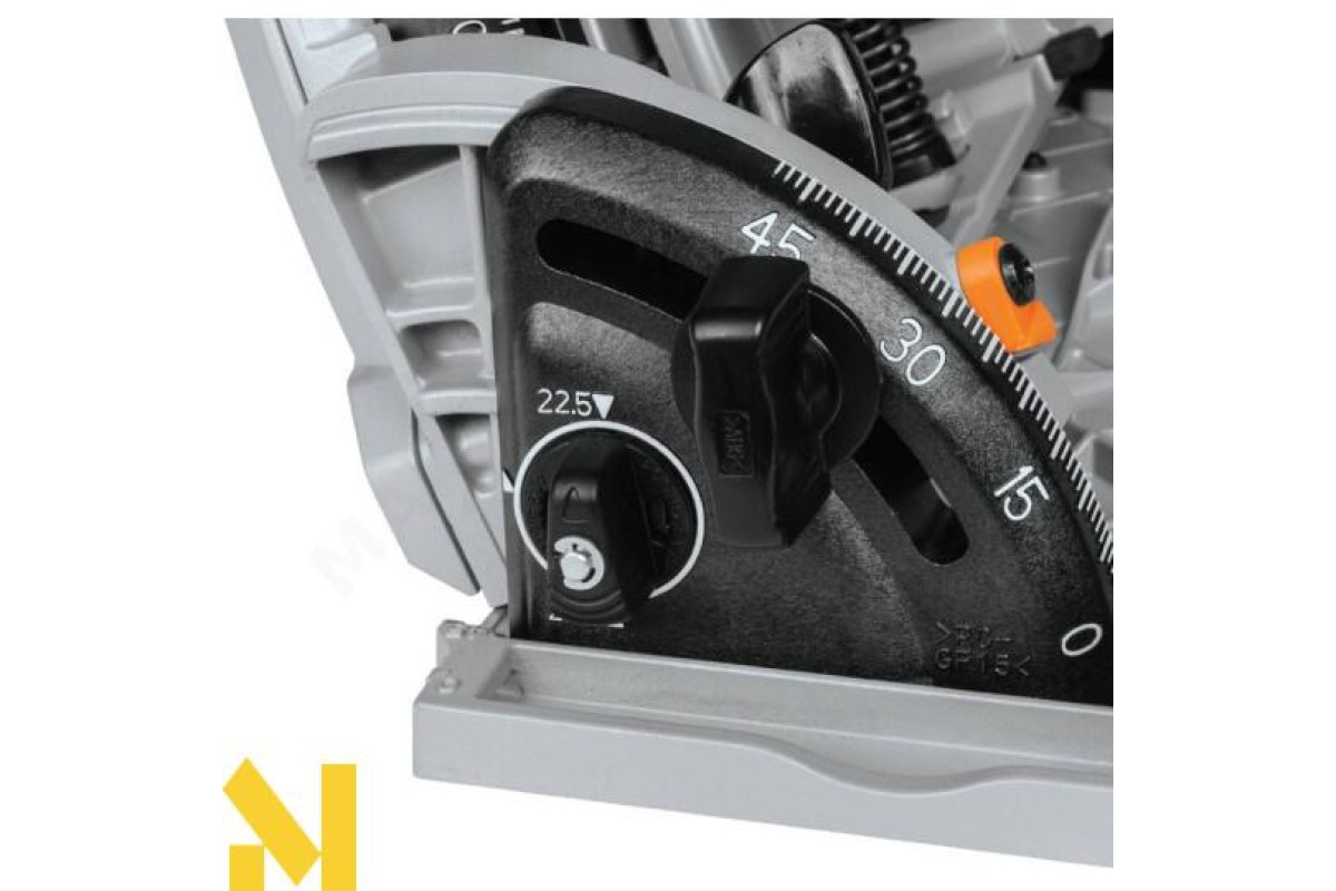 - Точні регулювання кутів нахилу ріжучого диска у вертикальній площині і глибини розпилювання