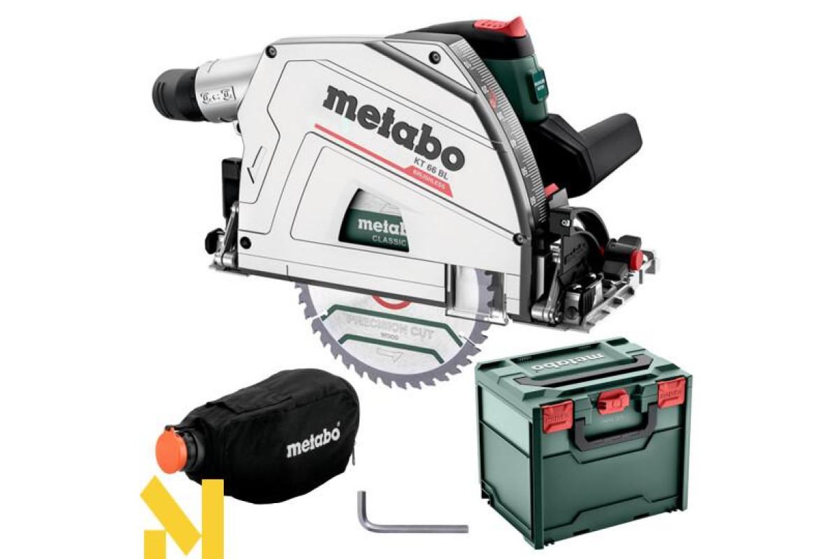 Встановлення на напрямних шинах Metabo та шинах інших виробників без зазору, з можливістю регулювання для точних результатів різання