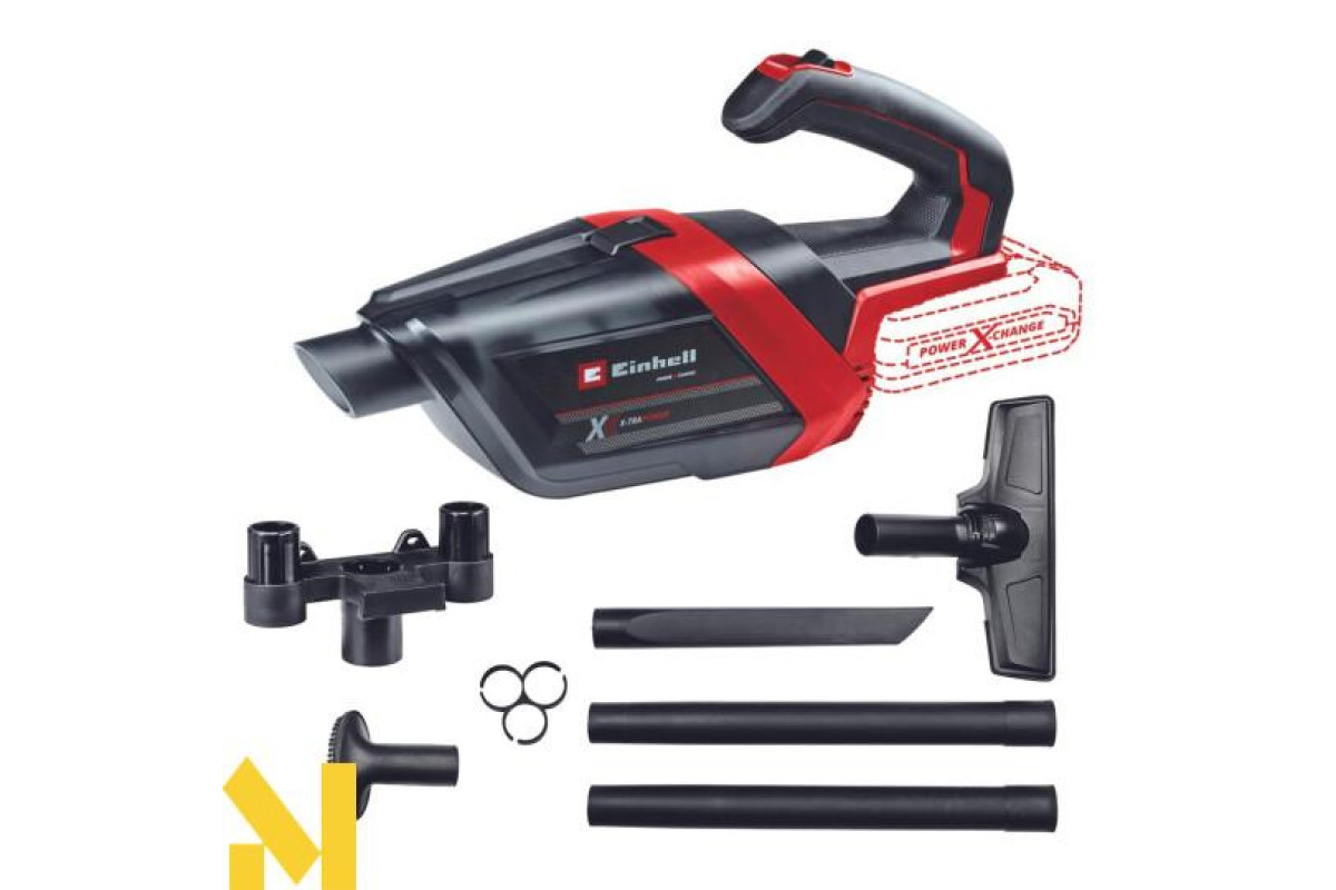 Акумуляторний ручний пилосос Einhell TE-HV 18/06 Li-Solo - це компактний помічник для видалення бруду. Цей пилосос є членом акумуляторної системи Einhell Power X-Change. Пилосос миттєво очищає будь-яку поверхню завдяки комплекту насадок, що входять до комплекту поставки, а саме: насадка для підлоги і гладких поверхонь, насадка для м'яких меблів, автомобільних сидінь і тканин, а також щілинна насадка, довжиною 26 см для важкодоступних місць. За допомогою двох всмоктувальних трубок (загальна довжина 70 см), пилосос можна використовувати і як звичайний побутовий пилосос. Фільтр легко витягується і його можна промити водою. Використання фільтра допускається тільки після повного його висушування. Завдяки настінному кріпленню, пилосос можна зберігати компактно. У комплект поставки АКБ не входить і купується додатково.