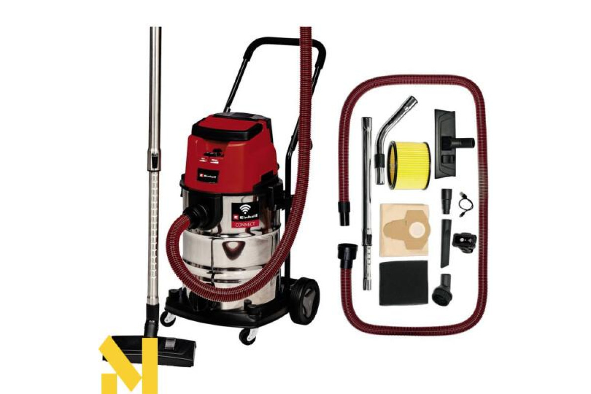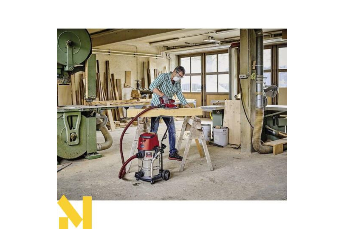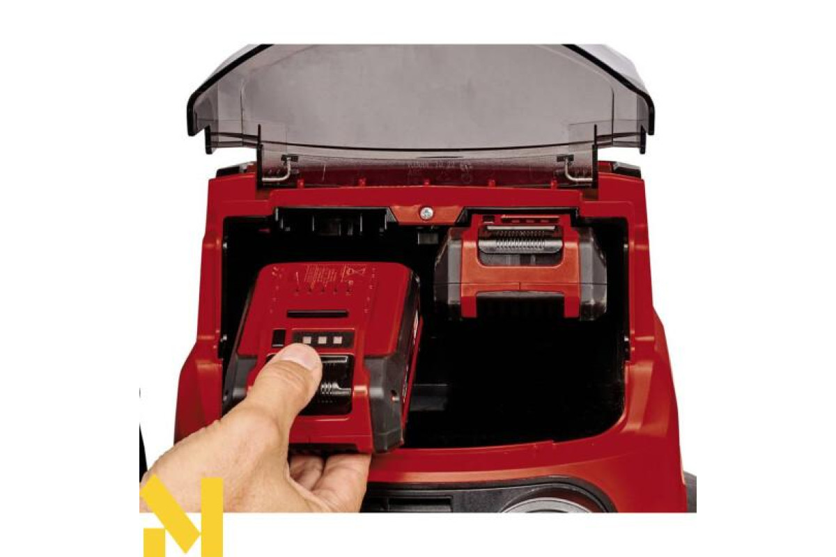 Акумуляторний пилосос Einhell TP-VC 36/30 S Auto-Solo працює від двох акумуляторів 18V із серії Power X-Change, які не входять до комплекту постачання, як і зарядний пристрій. Оптимальна батарея 18V для використання пилососа - це не менше 3.0 Ah. Ємність бака з нержавіючої сталі становить 30 літрів і містить зливний клапан. Телескопічні трубки дають змогу налаштувати необхідну висоту для тривалої роботи та комфортної роботи користувача. Пилосос має функцію автоматичного ввімкнення для акумуляторного інструменту Einhell, під час натискання кнопки ввімкнення під'єднаного до нього інструменту.