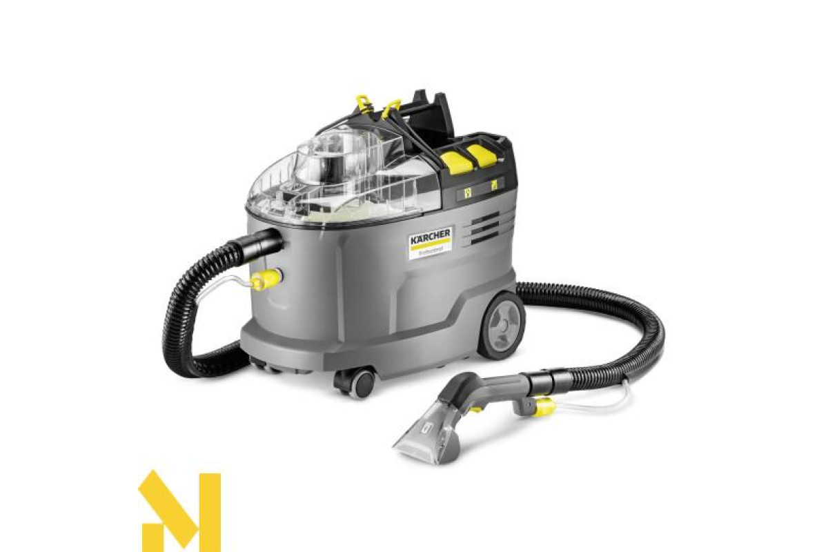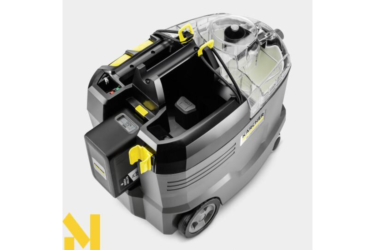 Унікальне бездротове рішення: акумуляторний миючий пилосос Puzzi 9/1 Bp – єдиний на світовому ринку професійного обладнання такого типу. Ця модель в лінійці апаратів Puzzi гарантує максимальну мобільність та відмінні результати очищення оббивки м'яких меблів та інших текстильних поверхонь у готелях, ресторанах, офісних та інших будинках, а також ефективне прибирання в салонах автомобілів. При цьому апарат працює настільки тихо, що може без проблем використовуватись у робочий час, а ергономічна ручка дозволяє легко переносити його однією рукою. Для ретельного очищення текстильних матеріалів на них під тиском розбризкується розчин засобу для чищення, який відразу ж всмоктується разом з брудом, що відокремлюється від волокон. У стандартну комплектацію апарату входять коротка насадка для м'яких меблів, всмоктувальний шланг із підведенням води, бак «2 в 1» для чистої та брудної води, тримачі для приладдя та багато іншого. При замовленні апарата в цій версії слід враховувати, що необхідні для його експлуатації потужний 36-вольтний акумулятор Kärcher Battery Power+ та відповідний швидкозарядний пристрій потрібно придбати окремо.