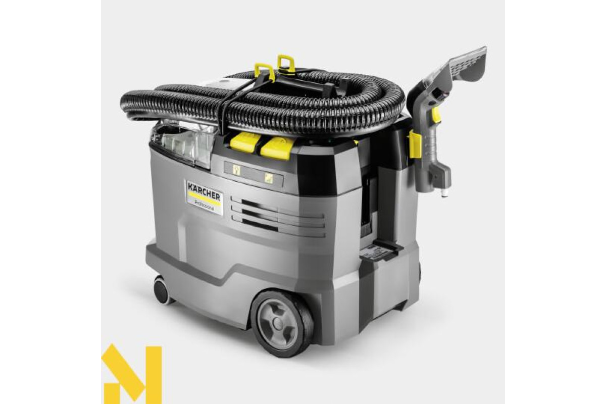 Унікальне бездротове рішення: акумуляторний миючий пилосос Puzzi 9/1 Bp – єдиний на світовому ринку професійного обладнання такого типу. Ця модель в лінійці апаратів Puzzi гарантує максимальну мобільність та відмінні результати очищення оббивки м'яких меблів та інших текстильних поверхонь у готелях, ресторанах, офісних та інших будинках, а також ефективне прибирання в салонах автомобілів. При цьому апарат працює настільки тихо, що може без проблем використовуватись у робочий час, а ергономічна ручка дозволяє легко переносити його однією рукою. Для ретельного очищення текстильних матеріалів на них під тиском розбризкується розчин засобу для чищення, який відразу ж всмоктується разом з брудом, що відокремлюється від волокон. У стандартну комплектацію апарату входять коротка насадка для м'яких меблів, всмоктувальний шланг із підведенням води, бак «2 в 1» для чистої та брудної води, тримачі для приладдя та багато іншого.