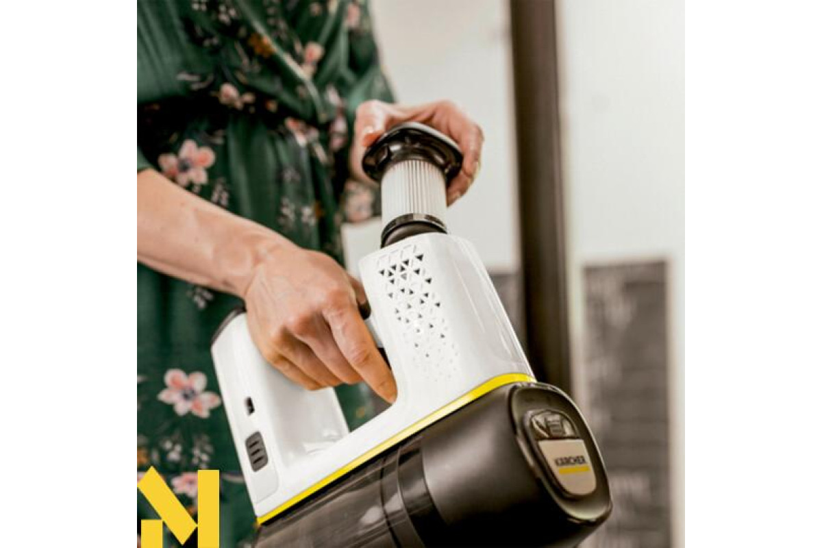 3-ступінчаста система фільтрації: фільтр циклонного типу, вхідний фільтр та гігієнічний HEPA-фільтр. Гігієнічний HEPA фільтр (EN 1822:1998) для випуску особливо чистого повітря. Легке спустошення контейнера. VC 6 Cordless Premium ourFamily: Активна насадка для підлоги