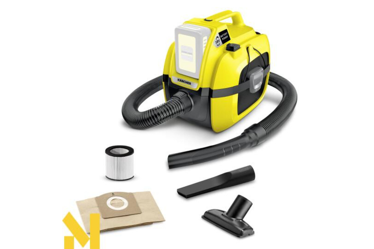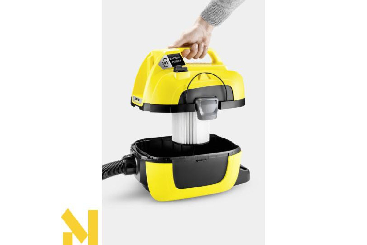 Завдяки роботі від акумулятора бездротовий господарський пилосос WD 1 Compact Battery забезпечує максимальну свободу рухів, може використовуватися без підключення до електромережі, а також надзвичайно легкий і компактний. Залежно від акумулятора 18 В (акумулятор не входить до комплекту поставки), господарський пилосос може працювати від 10 до 20 хвилин. Компактний акумуляторний пилосос WD 1 також має семилітровий пластиковий контейнер і патронний фільтр для зручного прибирання сухого та вологого сміття без необхідності заміни фільтра. Додаткові характеристики: шланг з оптимізованим потоком повітря та спеціальні аксесуари, такі як щілинна насадка і насадка для м'яких меблів забезпечують оптимальний збір сміття та ідеальну чистоту, особливо при очищенні салону автомобіля. Ще однією практичною деталлю є гнучка гумова стрічка, яку можна використовувати для зручного кріплення шланга. Компактний акумуляторний пилосос WD 1 приносить задоволення від прибирання завдяки додатковим функціям, таким як функція видування, система фіксації Pull & Push, ергономічна ручка для перенесення і практичне рішення для зберігання аксесуарів на корпусі пилососу. А завдяки його сумісності з платформою 18 В, акумулятори від інших пристроїв на 18 В можуть також використовуватися і для пилососу WD 1.