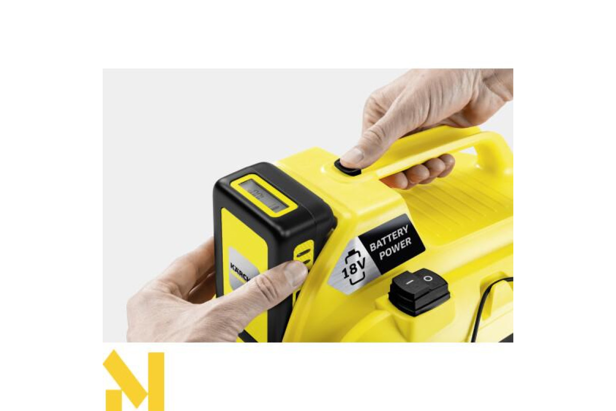 Дозволяє працювати без живлення і, отже, досягти максимальної свободи пересування. Технологія Real Time: відображення на РК-дисплеї акумулятора його ємності, решти часу роботи або заряду. Сумісний з усіма пристроями на акумуляторної батарейній платформі Kärcher Battery Power 18 В.