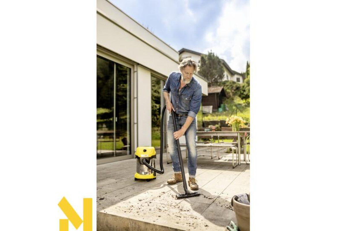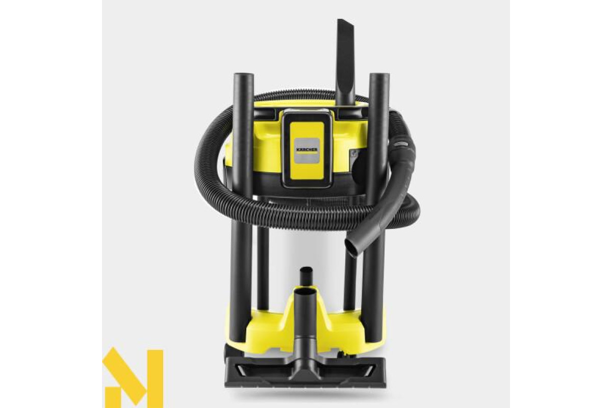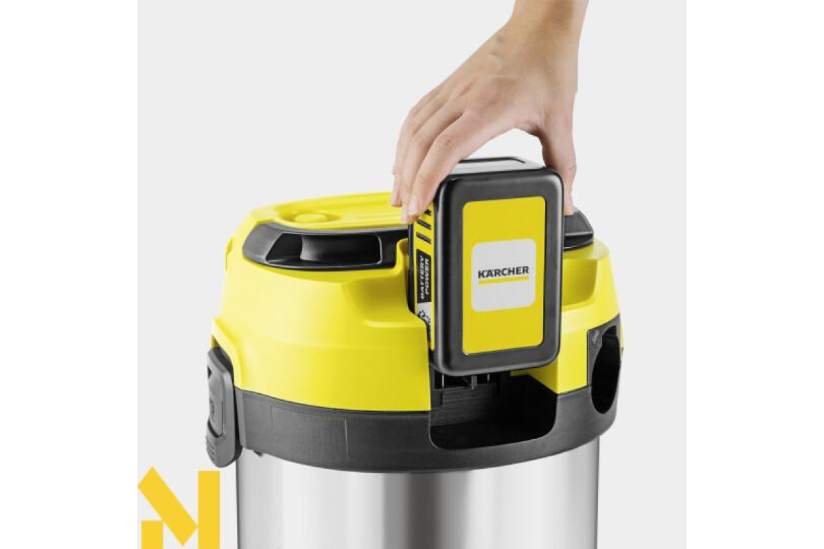 Без кабелю та без обмежень: бездротовий господарський пилосос WD 3-18 S, реалізований на акумуляторній платформі Kärcher Battery Power 18 В, відрізняється компактністю, універсальними можливостями та максимальною мобільністю. Апарат, що оптимально поєднується з 2-метровим шлангом, що всмоктує, і насадкою для підлоги, забезпечує швидкий збір дрібного або великого вологого і сухого сміття. Він укомплектований міцним 17-літровим сміттєзбірником із нержавіючої сталі, нерозбірним патронним фільтром та фільтр-мішком з нетканого матеріалу. Всмоктуючий шланг може підвішуватися у верхній частині апарату для компактного та акуратного зберігання. Іншими особливостями апарату є практична функція видування для видалення сміття з важкодоступних місць, наявність майданчика для укладання інструментів та дрібних деталей, зручний поворотний вимикач, ергономічна ручка для перенесення та замки Pull & Push, що дозволяють легко приєднувати та від'єднувати сміттєзбірник. Для зручного закріплення подовжувальних трубок та насадки для підлоги на час перерв у роботі або зберігання передбачені тримачі, сформовані у відбійнику пилососу.