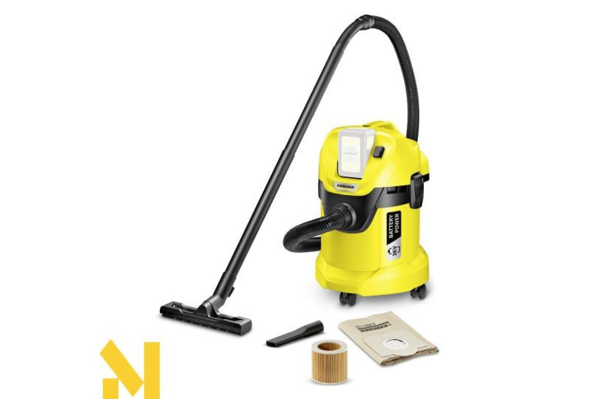 WD 3 Battery такий же функціональний, як і господарський пилосос з кабелем, але не вимагає підключення до мережі. Залежно від акумулятора його час роботи становить від 15 до 30 хвилин (акумулятор не входить у комплект поставки). Гнучкий акумуляторний господарський пилосос також має міцний і ударостійкий пластиковий контейнер ємністю 17 літрів, а також патронний фільтр для легкого прибирання сухого та вологого сміття без необхідності заміни фільтра. Оптимізований шланг і насадка для підлоги зі спеціальною вставкою допомагають забезпечити оптимальний збір бруду і гарантують ідеальну чистоту. Ще однією практичною деталлю є зйомна ручка, яка дозволяє кріпити аксесуари безпосередньо до всмоктуючого шлангу. Практичне положення парковки дозволяє зручно закріплювати всмоктуючу трубку і насадку для підлоги під час перерв. WD 3 Compact Battery приносить задоволення від прибирання завдяки таким додатковим функціям, як функція видування, система блокування Pull & Push, ергономічна ручка для перенесення і рішення для зберігання аксесуарів. А завдяки його сумісності з акумуляторною платформою 36 В акумулятори інших пристроїв з батареєю 36 В також можуть використовуватися в пилососах WD 3 Battery.