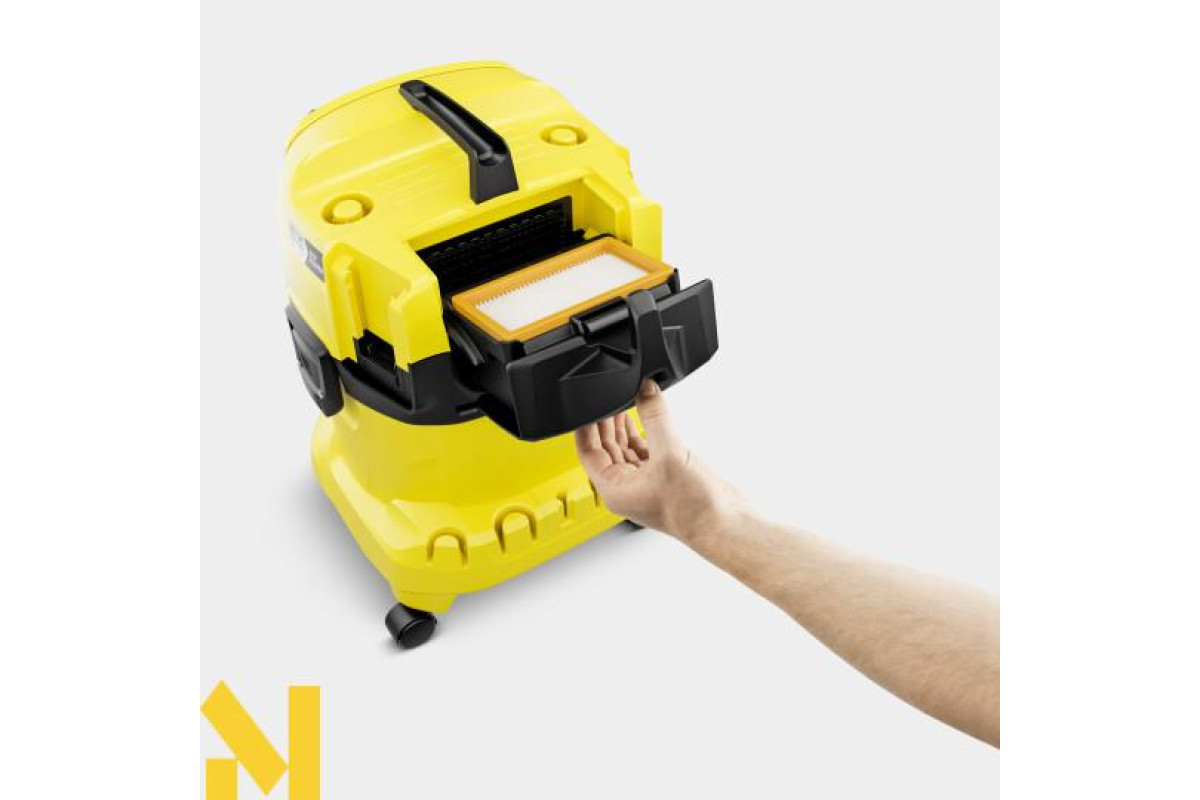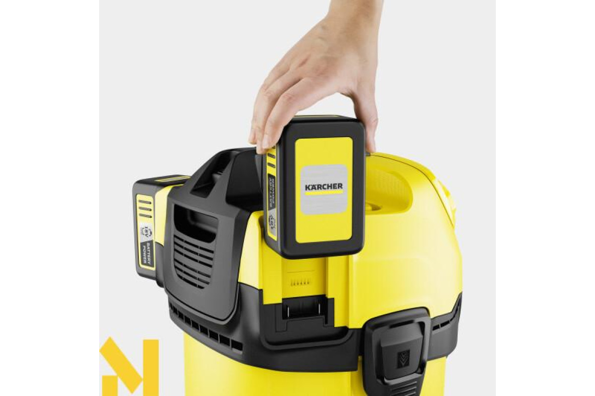 Всмоктування з подвійним зусиллям: два 18-вольтних акумулятора живлять потужний 36-вольтний електродвигун, дозволяючи вирішувати особливо складні завдання. Акумуляторний господарський пилосос WD 4-18 Dual є частиною акумуляторної платформи Kärcher Battery Power 18 В і забезпечує максимальну свободу переміщення під час прибирання. Апарат, всмоктувальний шланг завдовжки 2,2 метра і насадка для підлоги із засувкою оптимально поєднуються одна з одною і швидко видаляють вологі, дрібні або великі забруднення. Пилосос оснащений ударостійким 20 л пластмасовим сміттєзбірником, фільтром-мішком з нетканого матеріалу і плоским складчастим фільтром, який дає змогу перемикатися між сухим і вологим прибиранням без заміни фільтра. Завдяки запатентованій технології вилучення фільтр можна зняти й очистити за лічені секунди, не вступаючи в контакт із брудом. Там де неможливе всмоктування, допоможе функція видування. Всмоктувальний шланг може підвішуватися у верхній частині апарата для компактного й акуратного зберігання. Також передбачено швидке і зручне проміжне зберігання трубок і насадок для підлоги на бампері. Іншими особливостями є ергономічна ручка для перенесення та запобіжний затвор «Pull &Push» для простого відкривання та закривання контейнера.