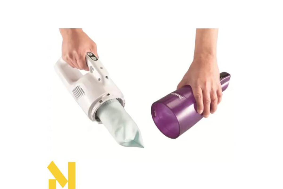 Білий дизайн з фіолетовим контейнером для пилу.