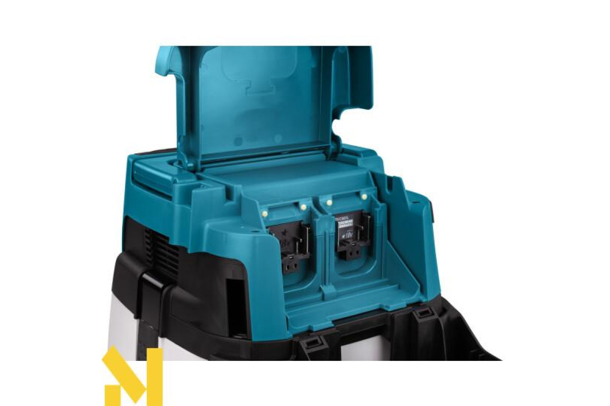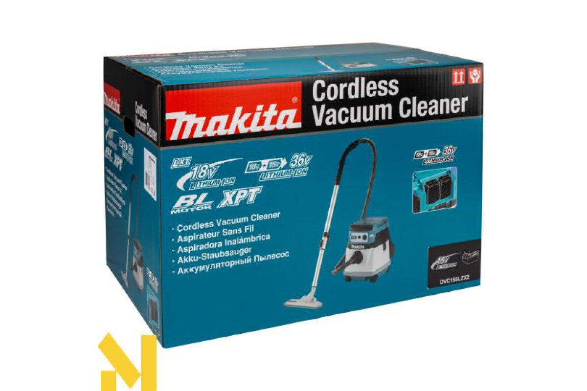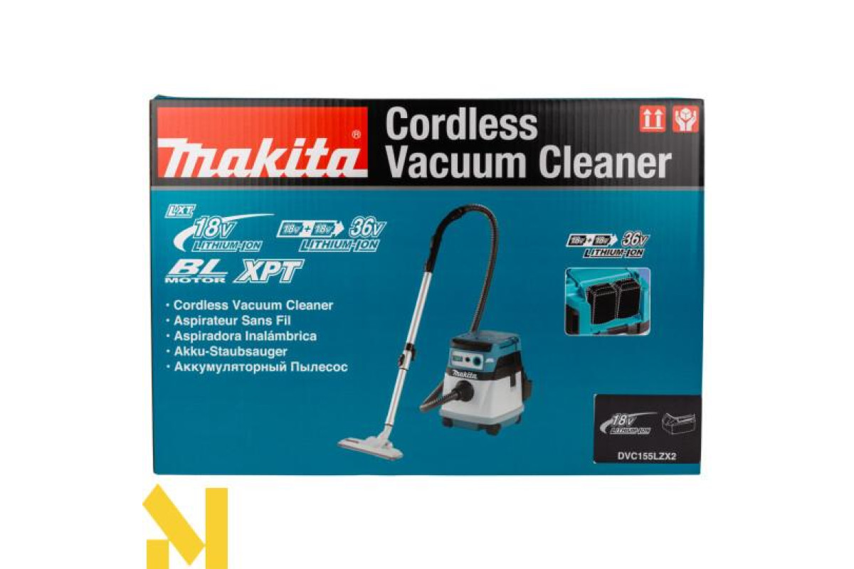 Makita DVC155LZX2 - це бездротовий пилосос для вологого і сухого прибирання, що живиться від двох послідовно з'єднаних літій-іонних батарей 18 В, сертифікований для захисту від пилу класу L відповідно до стандартів ЄС, що робить цей пилосос ідеальним для використання в сфері обслуговування будівель. Цей продукт оснащений регульованою потужністю всмоктування і вбудованим сховищем для шланга, передніх манжет, труб, насадок і шнура живлення. Поставляється з 1 комплектом поліетиленових пакетів, 1 шлангом 1,7 м x 32 мм, 1 алюмінієвою телескопічною трубкою, 1 трубкою, 1 соплом F / C, 1 соплом з довгою стулкою, 1 ящиком для інструментів.