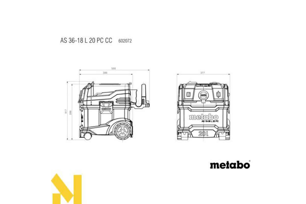 Безпровідне керування: витяжка вмикається і вимикається автоматично при вмиканні / вимиканні акумуляторного інструменту від Metabo або іншого виробника, що приєднаний до шланга