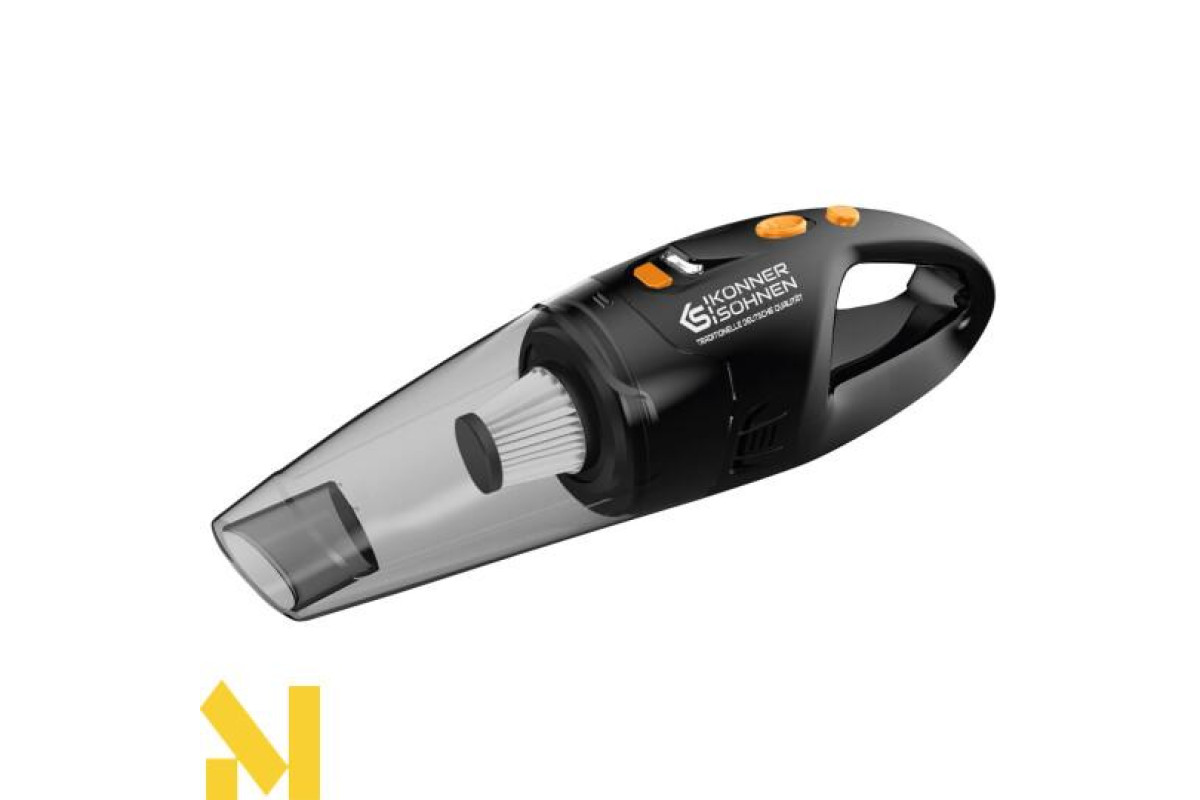 Німецька ТМ Könner & Söhnen представляє вашій увазі автомобільний ручний пилосос KS VC20 з ефективною системою фільтрації HEPA та унікальною конструкцією для швидкого очищення від будь-яких дрібних частинок сміття в салоні машини.
