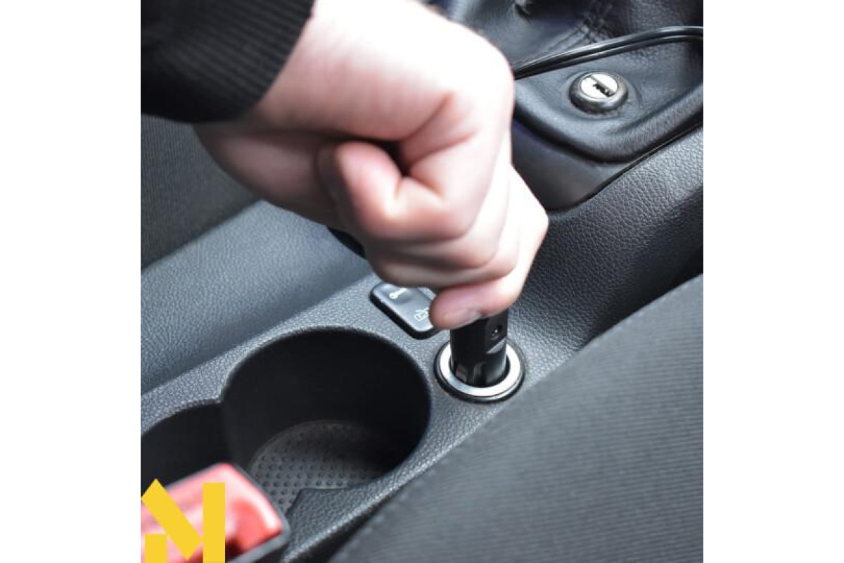 Призначений для підключення безпосередньо до виходу 12 В (прикурювача) в автомобілі. Це усуває потребу у зовнішньому джерелі живлення та робить його зручним для прибирання в дорозі.