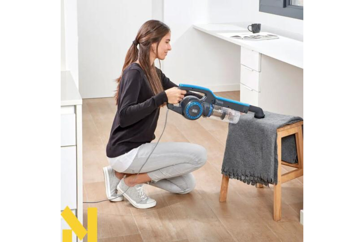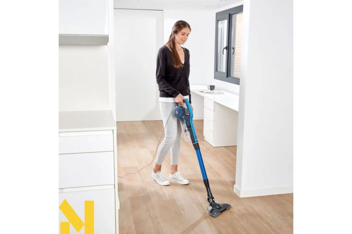 Пилосос для швидкого та зручного прибирання. Має щілинну насадку, що ідеально підходить для важкодоступних місць і щітку для ефективного очищення меблів, текстилю, штор та оббивки. Циклонний повітряний потік із сильною відцентровою силою відокремлює сміття від повітря, уникаючи забиття фільтрів.