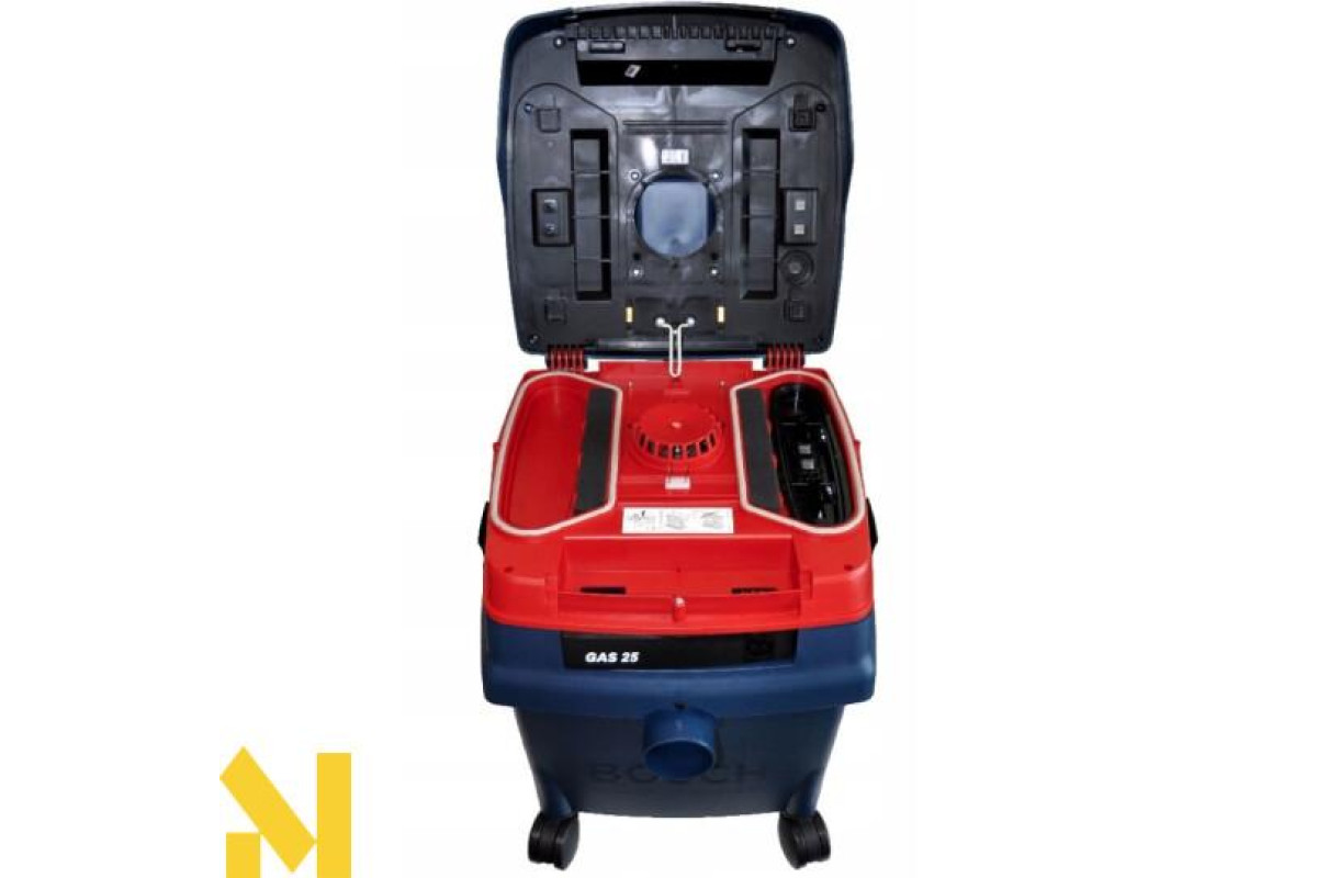 Високоефективний пилосос Bosch GAS 25 L SFC призначений для сухого та вологого прибирання на підприємствах, в майстернях. Пилосос потужністю 1200 Вт розрахований на інтенсивну експлуатацію на промислових площах. Складчастий фільтр площею 4300 см2 класу M з електромагнітної системою очищення Plus-clean. Максимальна пропускна здатність 220 м3/год. Максимальне розрідження 248 ГПa. Функція продувки. Розетка з автоматичним дистанційним включенням. Контейнер 25 л.