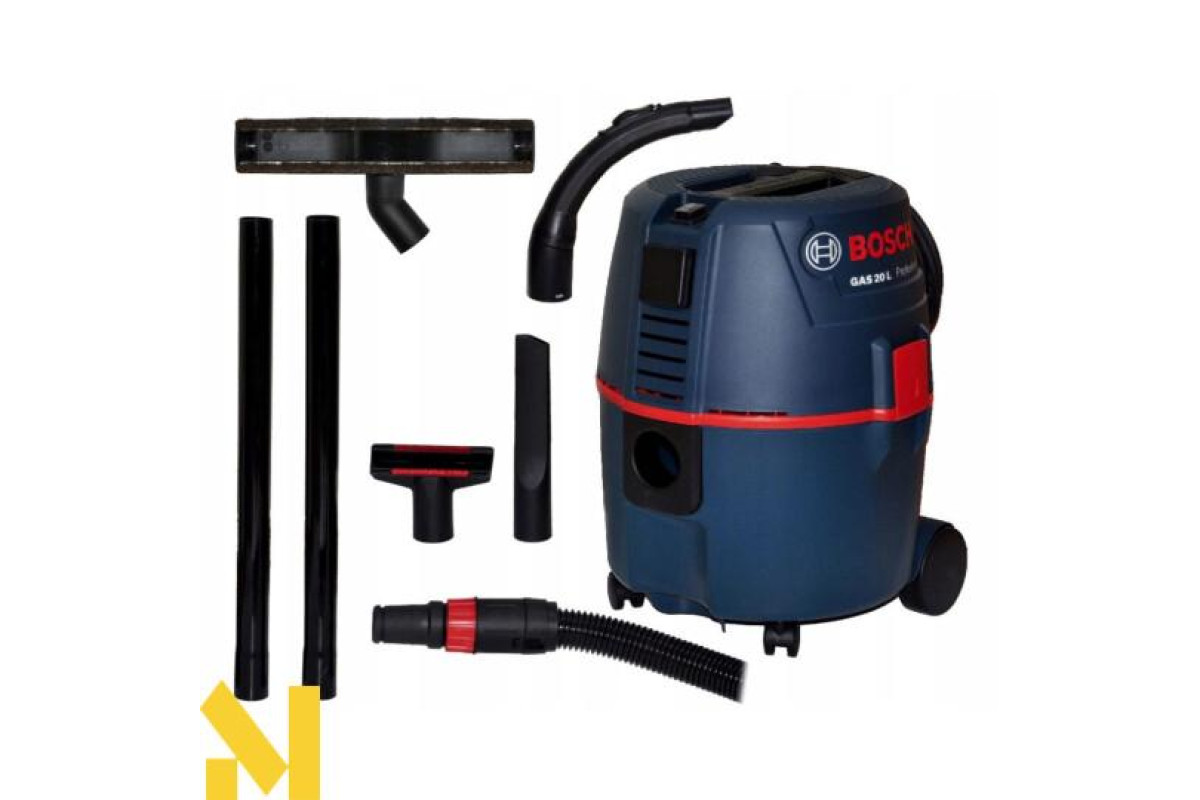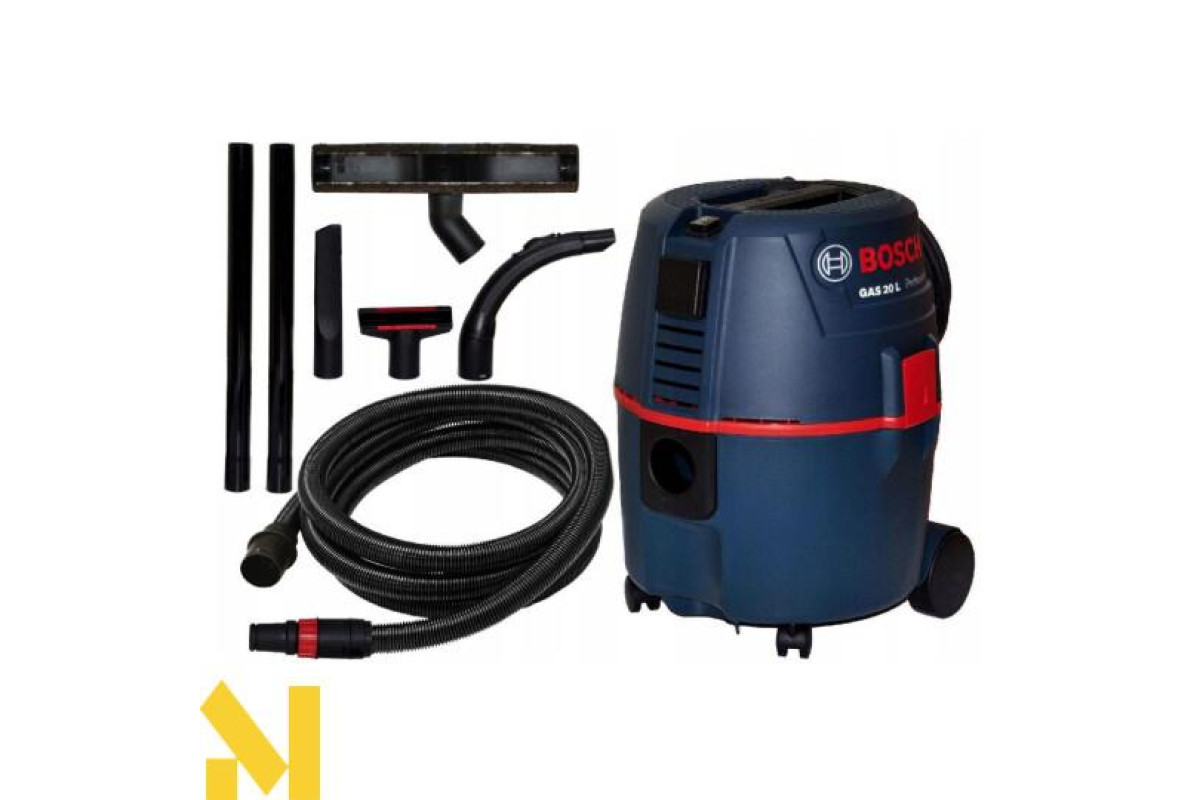 Будівельний пилосос Bosch GAS 20 L SFC це професійна техніка, яку використовують в поєднанні з інструментами або для збирання робочого місця, майстерні, невеликого цеху. Його конструкція дозволяє всмоктувати рідини. Ця модель працює на двигуні з потужністю 1200 Вт, який запускає спеціальну турбіну. Він має високу продуктивність, а тому здатний прибирати частинки сміття розміром до 25 мм. Завдяки спеціальному захисті, відбувається автоматичне відключення пилососа, якщо заповнена ємність. До того ж для дрібнодіспенсерного пилу існує мішок. Промисловий пилосос оснащений розеткою для підключення і має можливість дистанційного керування інструментом при включенні. За рахунок невеликих розмірів і ваги, він досить транспортабельний і маневрений. Рекомендується його застосовувати для невеликих за обсягом робіт.