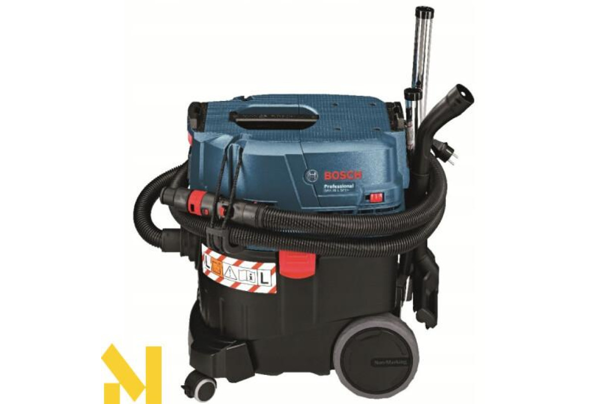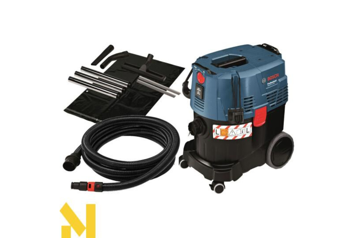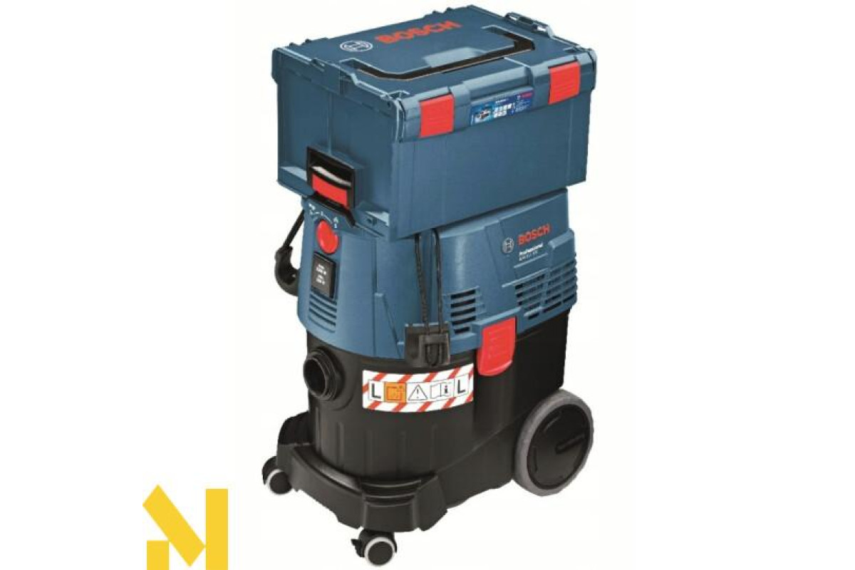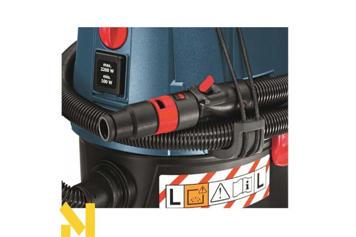 Промисловий пилосос Bosch GAS 35 L AFC сертифікована за класом безпечності типу «L», який відповідає стандартам ЄС щодо оптимального захисту користувача. Розетка для підключення володіє автоматичним включенням і виключенням та функцією вибігу. Крім цього корпус апарата оснащений тримачами для приладдя, кабелю і шланга. Також можна зберігати приналежності у кейсі L-BOXX, який фіксується на пилососі. Це дуже зручно, адже все необхідне знаходиться під рукою.