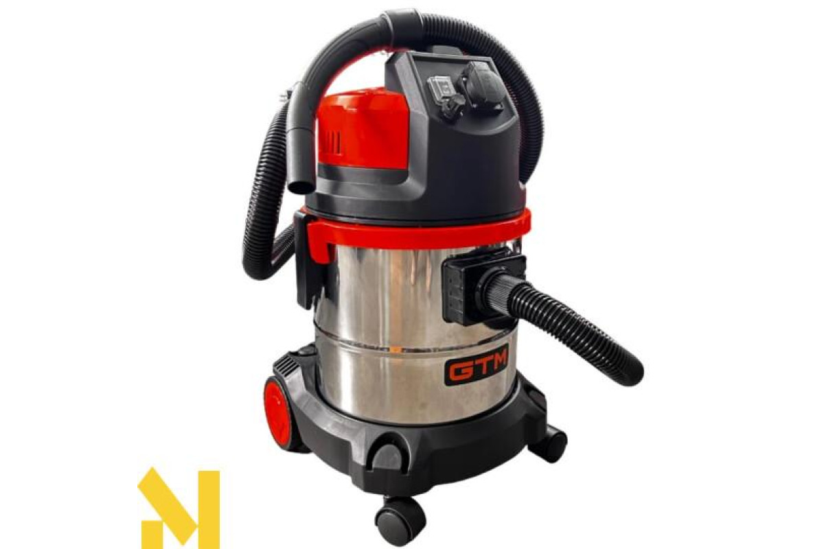 GTM JN 503 - компактний промисловий пилосос для прибирання сухого сміття. Сертифікований для роботи з пилом класу L. Працює від побутової електромережі з напругою 220 В. Його контейнер виготовлений із неіржавкої сталі та має ємність 30 літрів, чого достатньо для поглинання грубого або дрібного сміття.