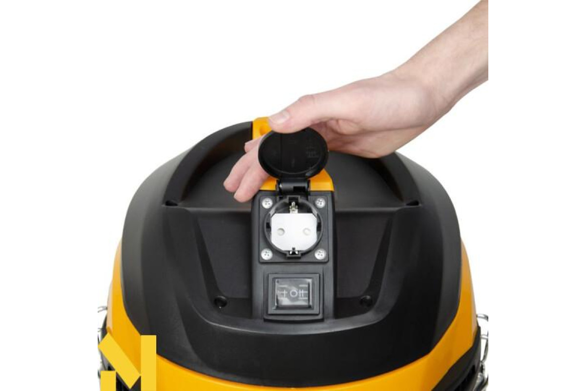 Синхронізована розетка потужністю 2 200 Вт - дозволяє використовувати пилосос у парі з шліфмашинами, фрезерами, рубанками, штроборізами та іншими інструментами, що утворюють велику кількість будівельного пилу. Також вона може виконувати функцію звичайного подовжувача – якщо обрано режим без автоматичного запуску пилососа.