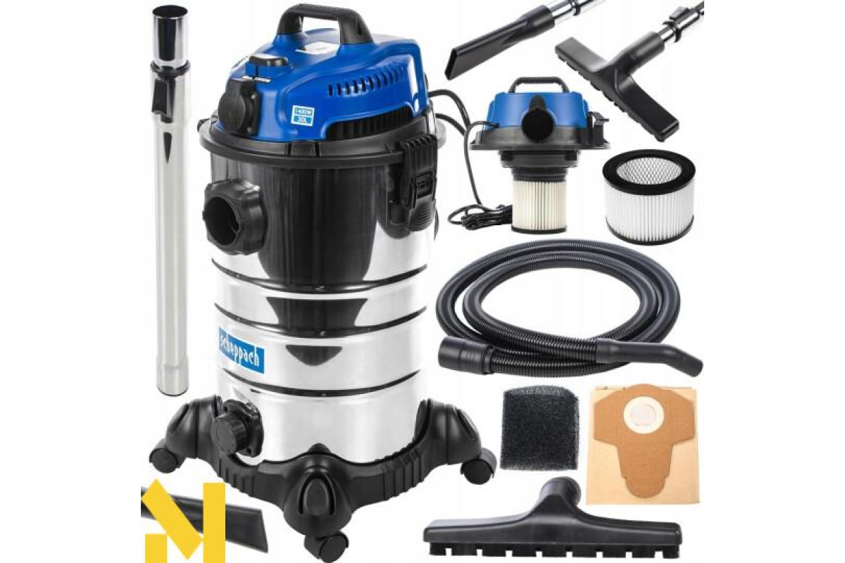 Пилосос характеризується дуже потужним електродвигуном потужністю 1400 Вт і міцним баком з нержавіючої сталі. Верхній корпус і нижня частина виготовлені з твердого пластика, який стійкий не тільки до механічних пошкоджень, але також до зносу і шкідливим зовнішнім факторам. Пилосос відповідає стандартам ЄС, споживає мало енергії і дуже ефективний. Представлений пристрій дуже універсально, воно може впоратися з усіма видами забруднень, як сухими, так і мокрими. Великий 30-літровий бак з нержавіючої сталі дозволяє нам працювати протягом тривалого часу без необхідності постійного спорожнення. Двигун захищений від бруду губчастим фільтром. Пилосос має 4 колеса, які значно полегшують його переміщення під час роботи.