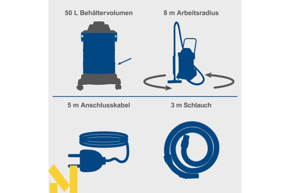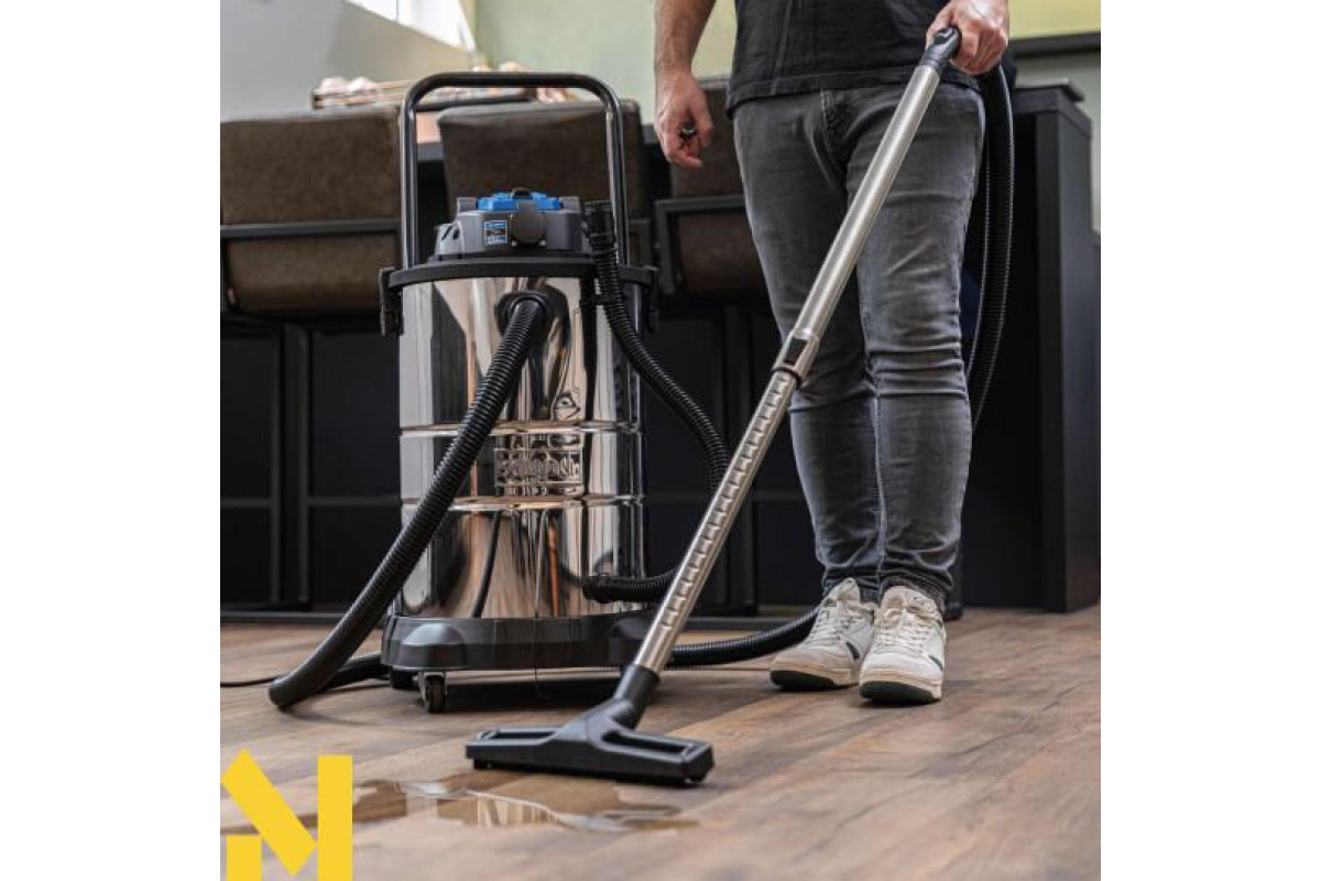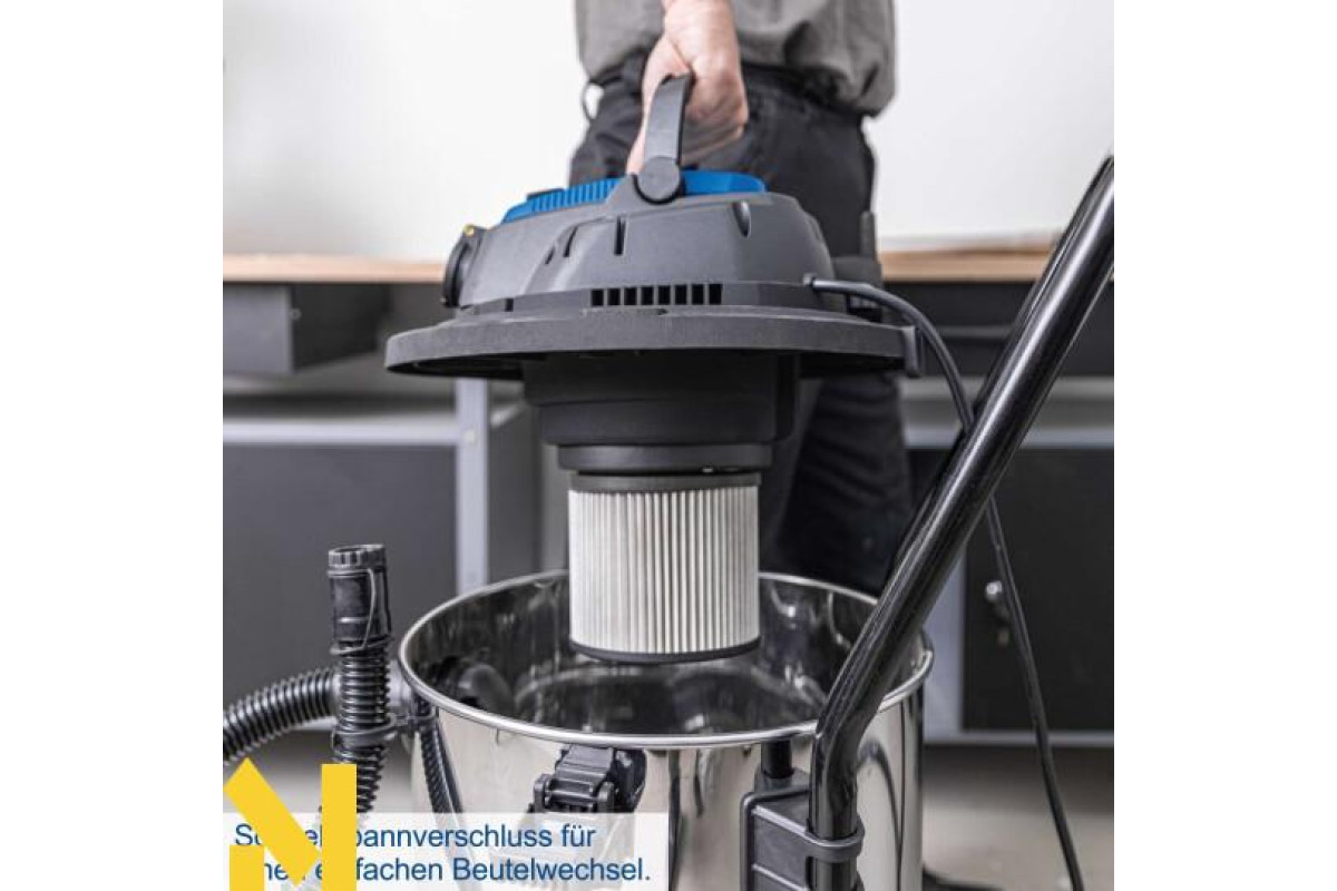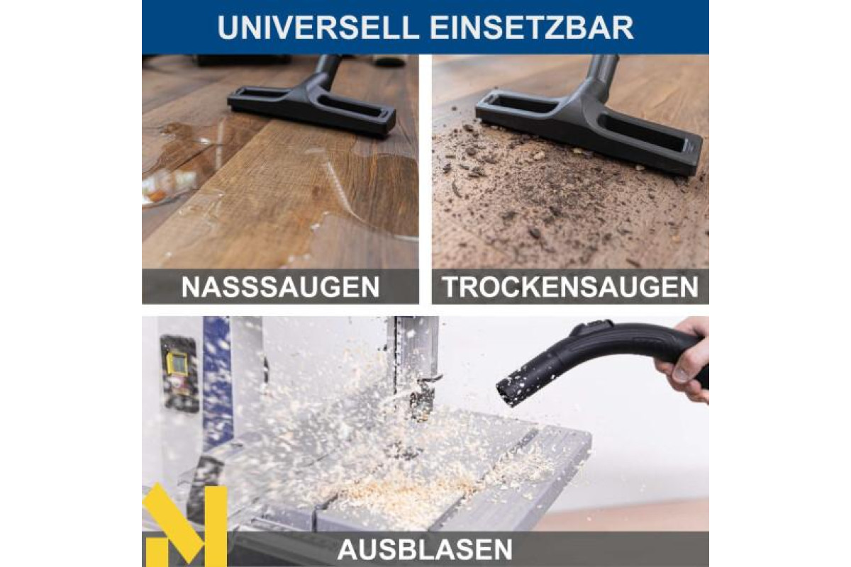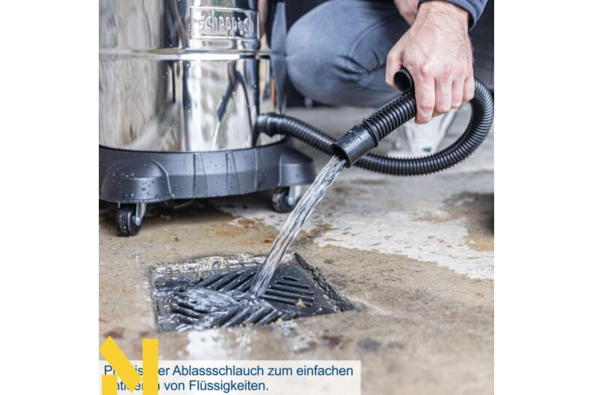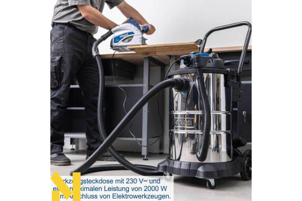 Електричний пилосос для вологого/сухого прибирання Scheppach VC50 надійно видаляє пил, бруд та рідини з усіх типів підлог завдяки силі всмоктування 20 кПа. Це робить його ідеальним для використання вдома або на будівельних майданчиках. Завдяки практичній функції видування, навіть важкодоступні місця можна легко очистити. Функція ручного очищення фільтра також забезпечує постійно високу силу всмоктування. Міцний, стійкий до іржі контейнер для збору сміття з нержавіючої сталі вміщує 50 літрів і оснащений швидкознімними кріпленнями для легкого спорожнення. VC50 постачається з 2-метровим всмоктувальним шлангом, алюмінієвою телескопічною трубкою, паперовим пакетом, сертифікованим FSC, поролоновим фільтром, щілинною насадкою, насадкою для підлоги, адаптером для підключення, складчастим фільтром та зливним шлангом.