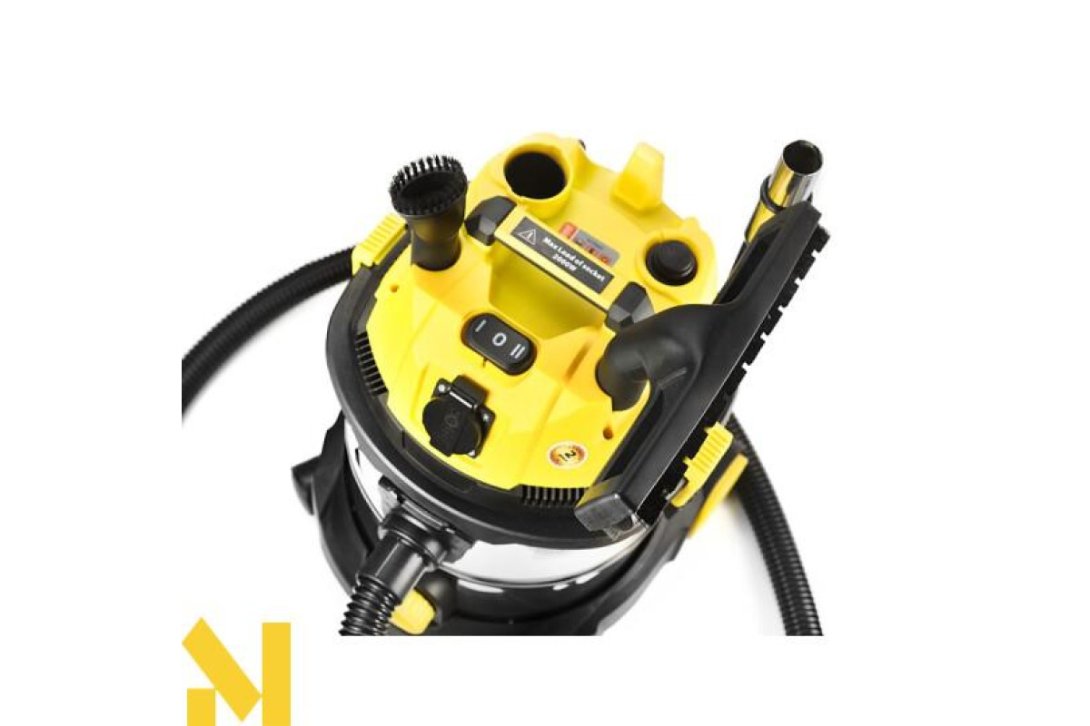 Переваги товару | Швидка очистка фільтра. Потужний двигун, рівень всмоктування 19кПа. Розетка на 2000 Вт . Функція обдуву. Зручні великі колеса. Функціия дренажа. Надійний металічений бак. Місце під аксесуари на корпусіе. Шланг 2,5 м. Гарантія 2 роки |