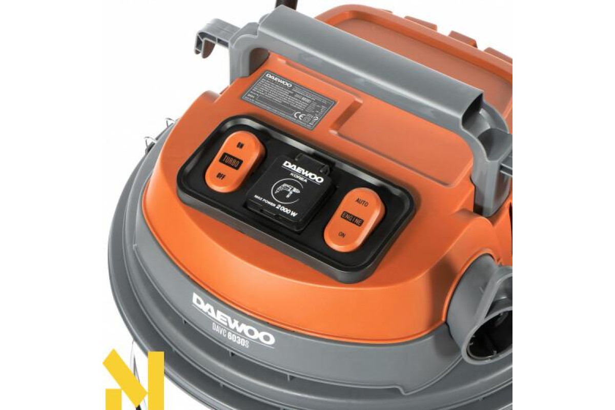 Вбудована розетка дозволяє підключати електроінструмент потужністю до 2 кВт. Пилосос автоматично включається під час роботи інструменту і вимикається із затримкою після зупинки для видалення бруду зі шланга.