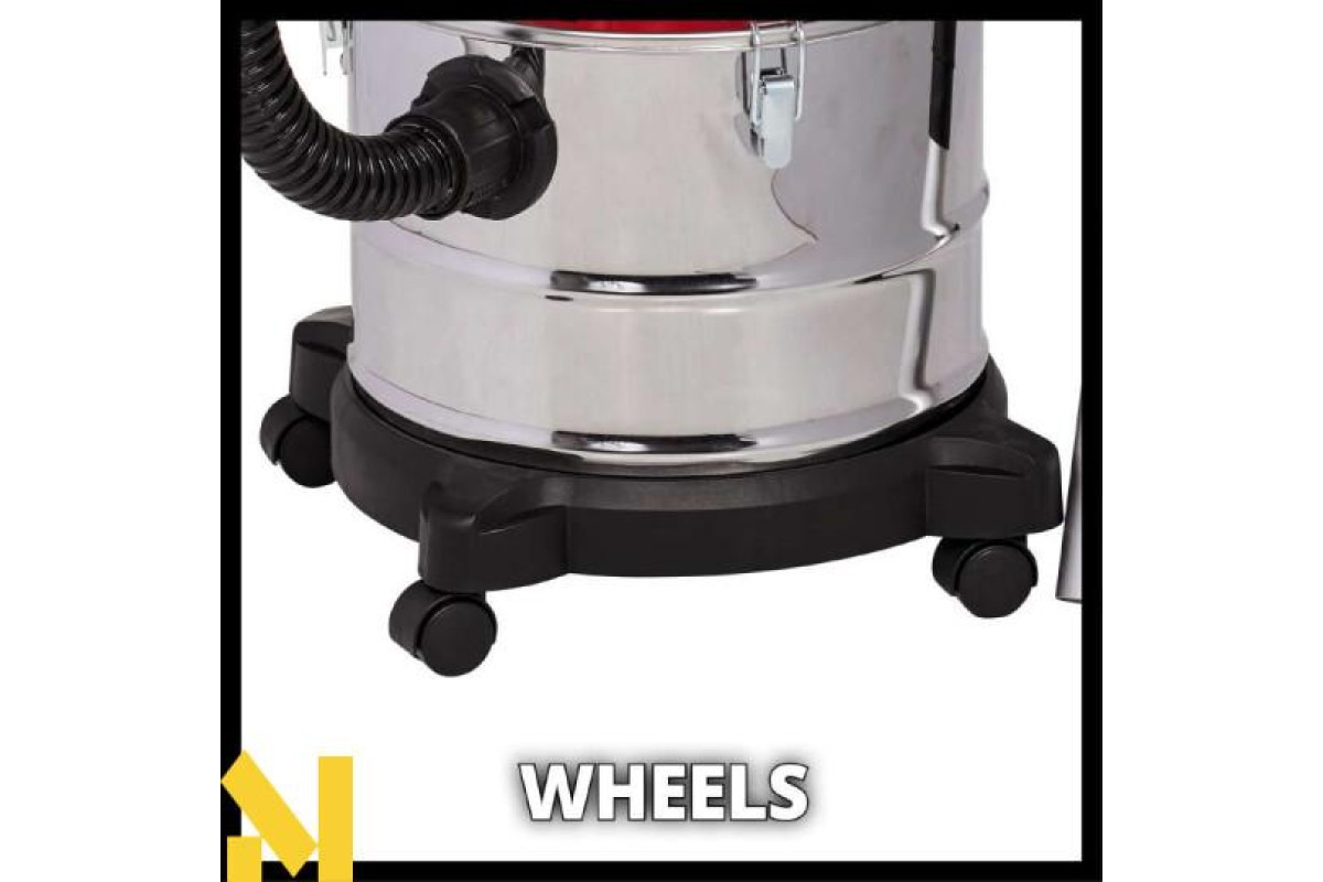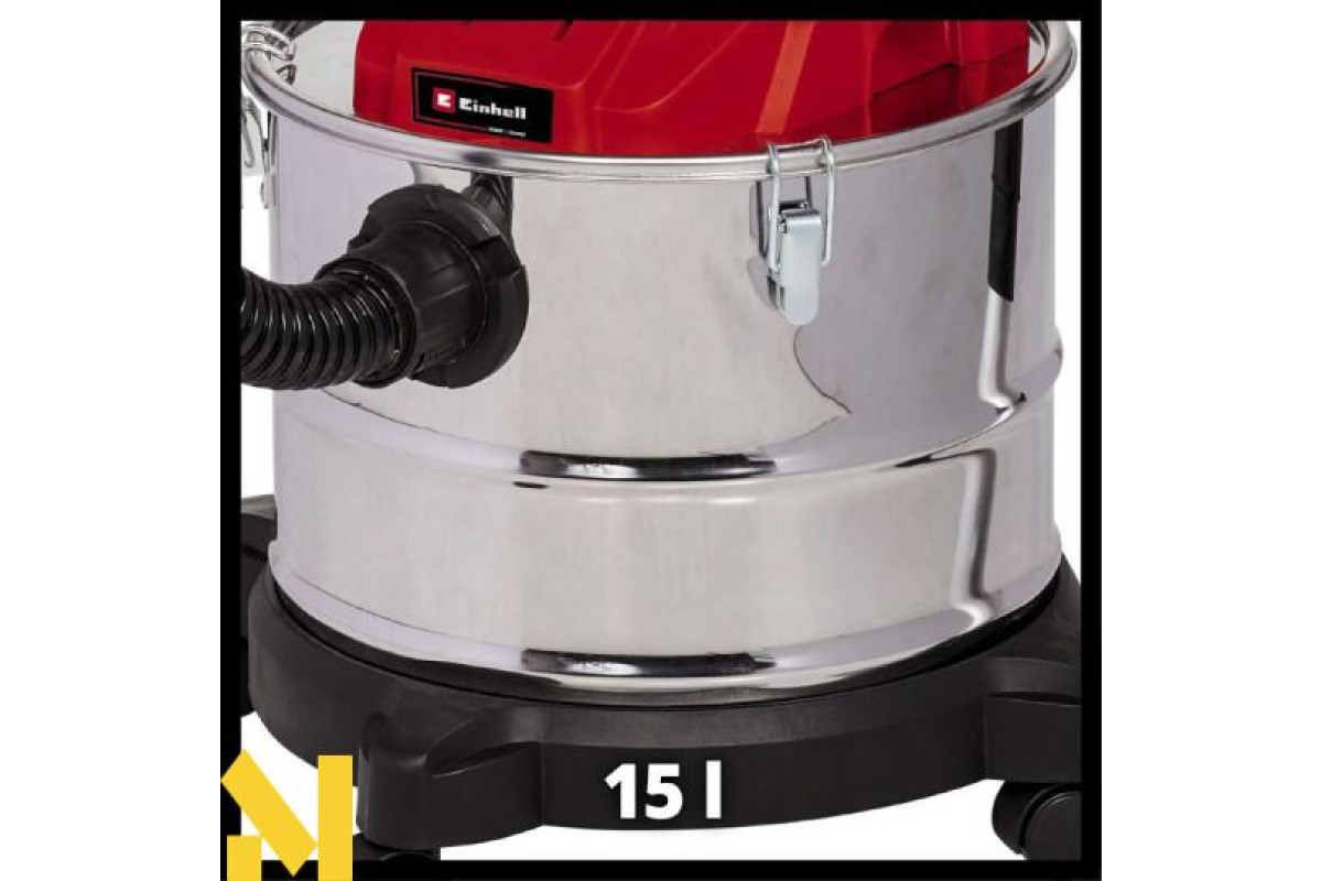 Акумуляторний пилосос для золи Einhell TE-AV 18/15 Li C - Solo забезпечує легке та акуратне очищення від золи мангалів, печей та камінів. Максимальна потужність всмоктування становить 100 мбар. Цей пилосос працює від одного 18 В акумулятора і є пристроєм сімейства Einhell Power X-Change. Контейнер об'ємом 15 л розрахований на тривалу роботу. Оснащений армованим металом шлангом (36 мм - довжиною 1,2 м) і алюмінієвою всмоктувальною трубкою. Лише чиста піч добре всмоктує повітря – при цьому золу потрібно видаляти не лише із золозбірника, а й із важкодоступних кутів та проміжків між ними.Система очищення фільтра забезпечує відновлення повної потужності всмоктування 100 мбар, не залишаючи жодного шансу для дрібного чи зольного пилу завдяки гофрованій системі фільтрів. Функцію видування можна використовувати, просто підключивши шланг до повітряного отвору. Пилосос для золи має міцну конструкцію завдяки укріпленому металом всмоктувальному шлангу та алюмінієвій трубці. Великий збірний контейнер об’ємом 15 літрів дає змогу працювати довше та легко спорожняється завдяки швидкоз’ємним кріпленням. Акумуляторний пилосос для золи має чотири ролика для гнучкості та мобільності. Практична ручка для транспортування забезпечує легке транспортування, а всмоктувальний шланг можна закріпити на пилососі для економії місця. Цей продукт поставляється без акумулятора та зарядного пристрою, які доступні окремо.