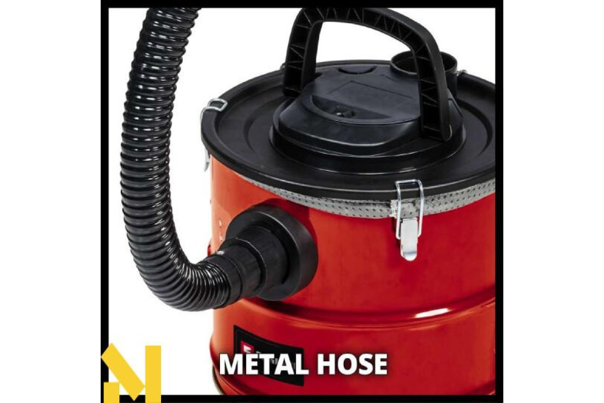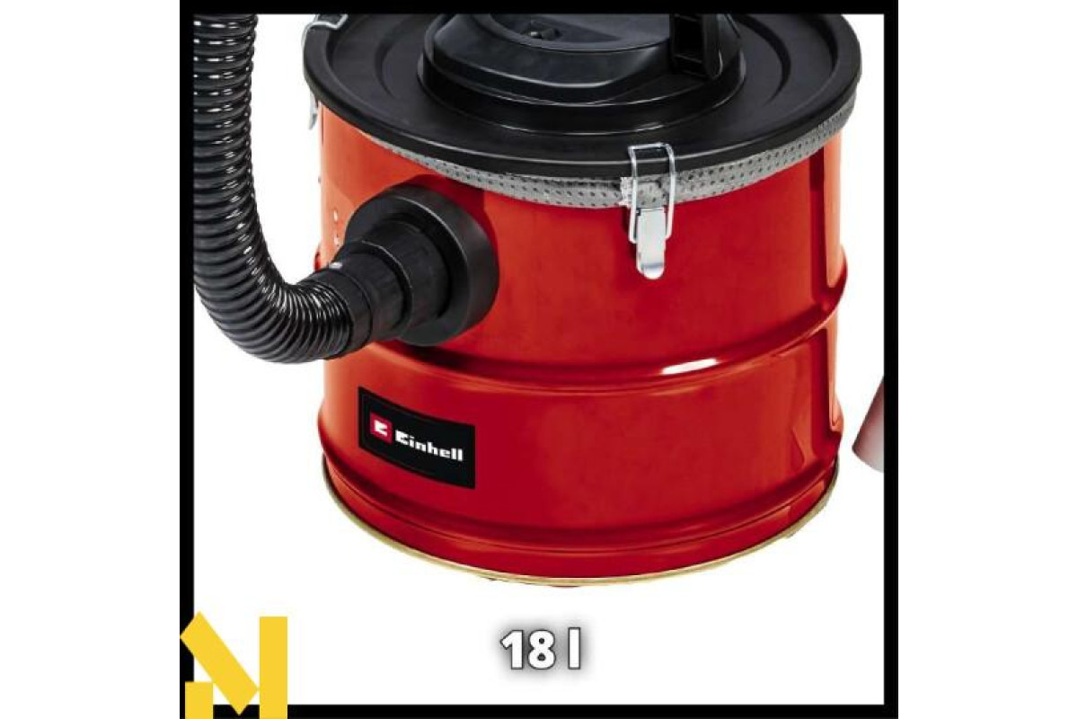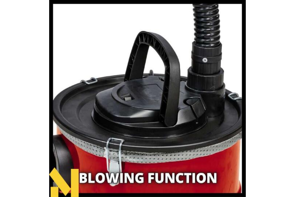Зольний пилосос Einhell TC-AV 1718 D забезпечує легке та акуратне очищення від золи мангалів, печей та камінів. Максимальна потужність всмоктування становить 170 мбар. Контейнер об'ємом 18 л розрахований на тривалу роботу. Оснащений армованим металом шлангом (36 мм - довжиною 1 м) і алюмінієвою всмоктувальною трубкою. Чистота повітря при зборі золи забезпечується гофрованим фільтром та додатковим попереднім фільтром для кращої фільтрації. Це запобігає швидкому засміченню основного фільтра. Замки зольного пилососу Einhell TC-AV 1718 D, що швидко відкриваються, дозволяють швидко відкривати контейнер для його очищення. Для зручності роботи та мобільності є ручка для перенесення. Коли кабель живлення не використовується, його можна змотати та закріпити за допомогою застібки з липучкою для зручного зберігання. Існує можливість використовувати функцію видування, під'єднавши шланг до адаптера повітродува, Ви можете очистити Ваші доріжки в саду від сторонніх предметів, здувши їх убік.