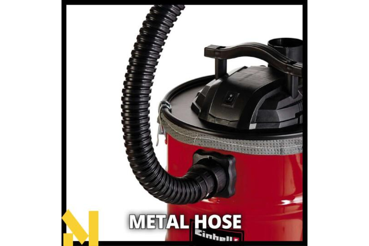 Новий зольний пилосос Einhell TC-AV 1618 D забезпечує легку і акуратну очищення від золи мангалів, печей і камінів. Контейнер обсягом 18 літрів розрахований на тривалу роботу. Оснащений армованим металом всмоктуючим шлангом (36 мм - довжиною 1 м) і алюмінієвої всмоктуючої трубкою. Чистота повітря при зборі золи забезпечується гофрованим фільтром і додатковим попереднім фільтром для кращої фільтрації. Це запобігає швидкому засмічення основного фільтра. Яка швидко замки зольного пилососа Einhell TC-AV 1618 D дозволяють швидко відкривати контейнер для його очищення, а зручна ручка для перенесення полегшує транспортування. Приєднавши шланг до адаптера повітродуву, Ви можете очистити Ваші доріжки в саду від сторонніх предметів, Сдув їх в сторону. Кабель живлення може бути намотаний на ручку для зручного зберігання.