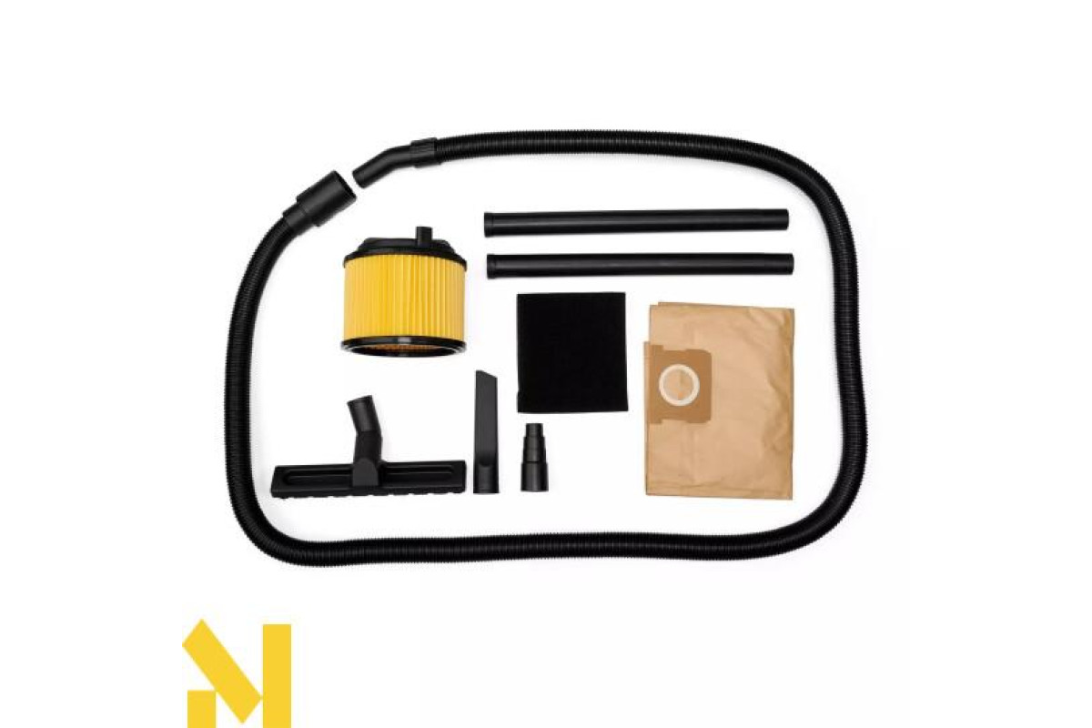 Універсальна комбінована насадка з коліщатками ідеально підходить для чищення килимів і гладких підлог. За допомогою насадки для швів можна легко досягти навіть вузьких або важкодоступних місць. Аксесуари можна зберігати в практичній сумці для зберігання. Також до комплекту входять гофрований фільтр і міцний мішок для збору бруду для сухого всмоктування та поролоновий фільтр для поглинання рідин.