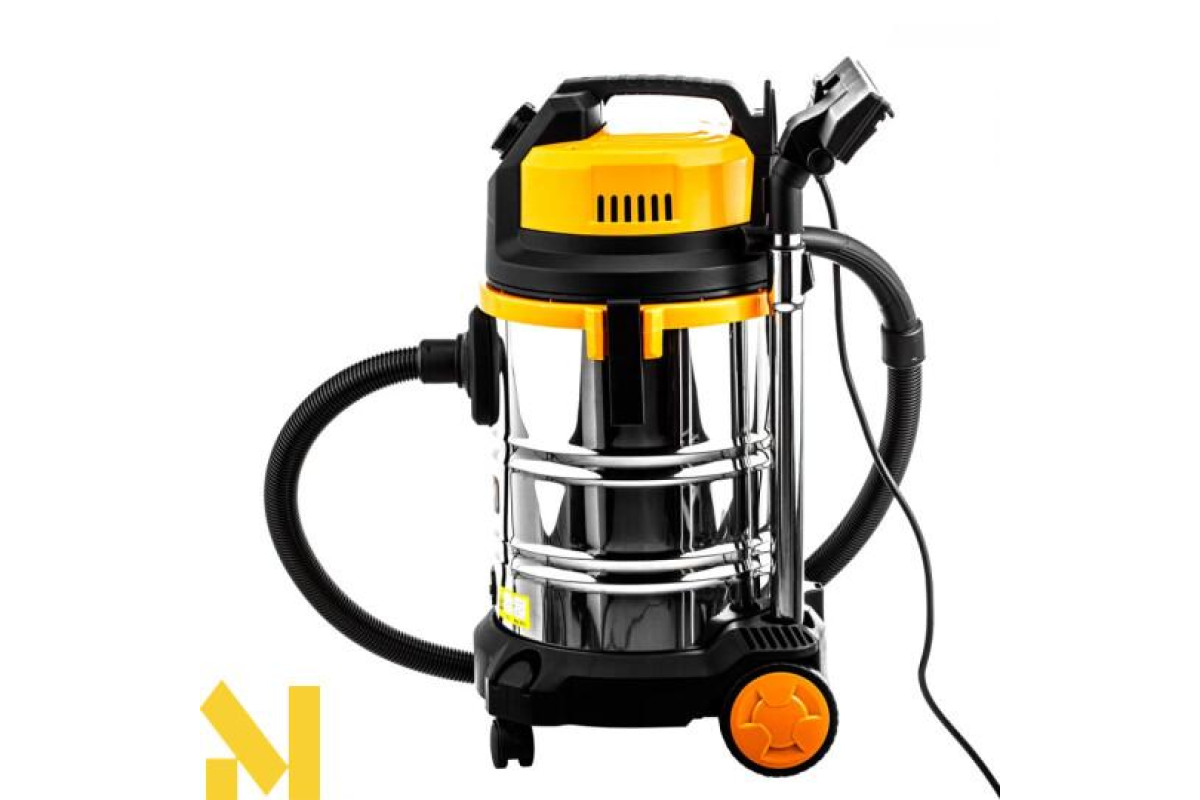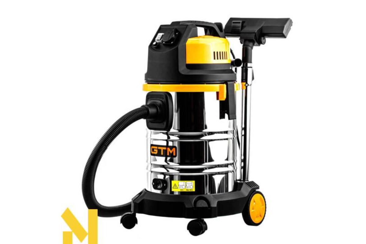 GTM JN 508 - промисловий пилосмок для прибирання сухого та вологого сміття, а також збору води. Сертифікований для роботи з пилом класу L. Працює від побутової електромережі з напругою 220 В. Його контейнер виготовлено з нержавіючої сталі та має ємність 30 літрів чого достатньо для поглинання грубого або дрібного сміття.