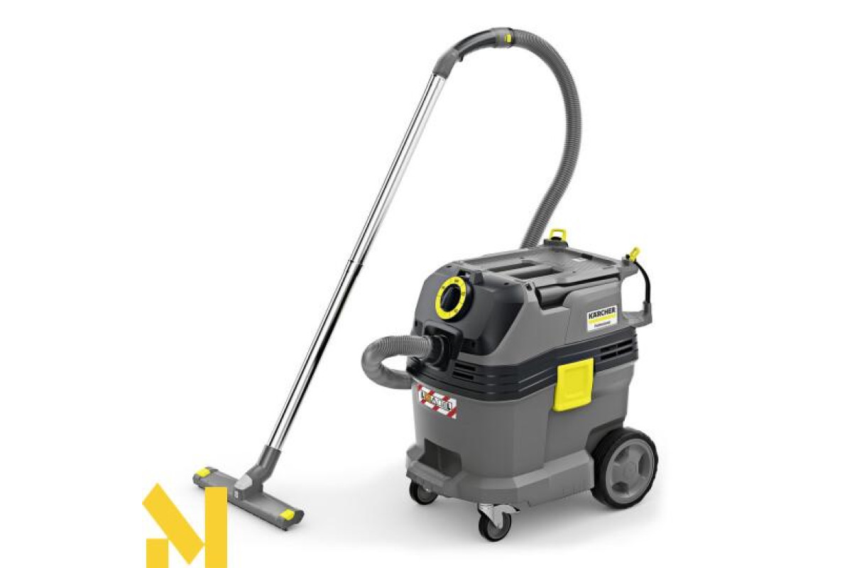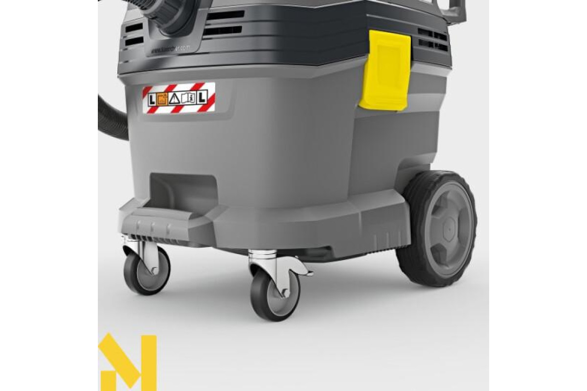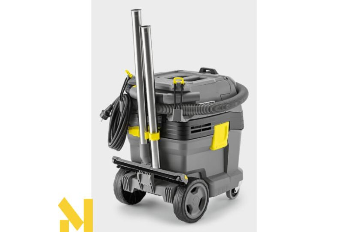 Для швидкого та ефективного прибирання машин, техніки, майстерень і будівельних об'єктів: пилосос сухого та вологого прибирання Kärcher NT 30/1 Tact - універсальний апарат для професійних працівників з різних галузей виробництва. Цей компактний багатофункціональний пилосос оснащений вражаючою системою автоматичного очищення фільтра Tact і вологостійким плоским складчастим фільтром з поліефірного шовку PES, що забезпечує дбайливе прибирання великої кількості дрібного пилу протягом довгого часу. Бруд і рідини можуть бути ефективно зібрані в міцний 30-літровий контейнер з відбійником і металевими колесами. Управління та робота з пилососом відрізняються простотою і зручністю завдяки новому центральному поворотному вимикачу. Апарат поставляється в зборі з новими спеціально розробленими і модернізованими аксесуарами, які можуть зручно зберігатися в спеціальних відсіках на корпусі пилососа. Прогумовані поверхні і продумані варіанти кріплення дозволяють розмістити різний інструмент і коробки на плоскій кришці пилососа.