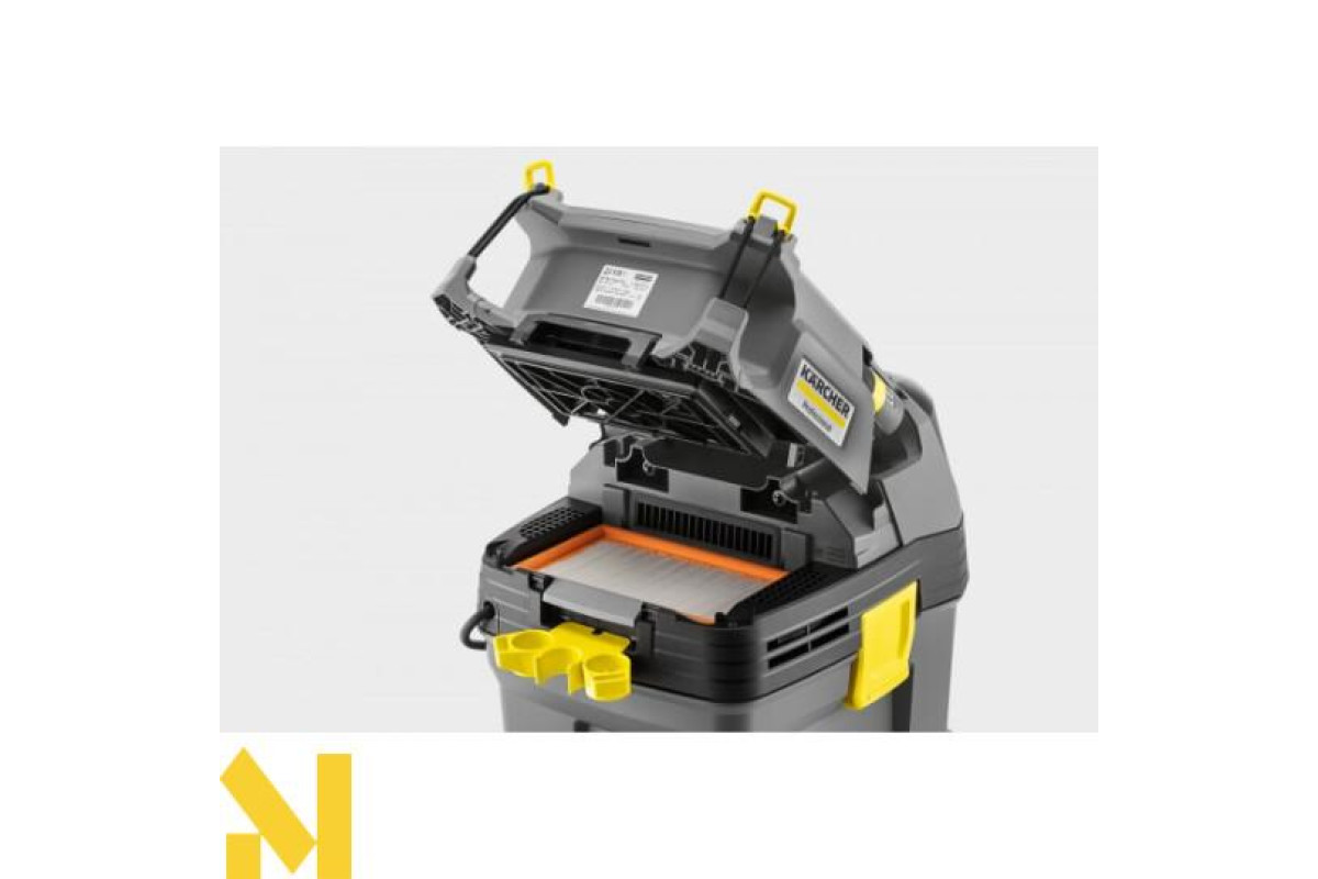 Щоденна важка робота на будівельних об'єктах і в майстернях формує високі запити серед майстрів стосовно до обладнання. Наш пилосос сухого та вологого прибирання NT 30/1 Tact Te L відповідає всім цим вимогою в найвищого ступеня. Цей компактний експерт зі збору дрібного пилу зі стійким 30-літровим контейнером і міцними металевими колесами і відбійниками, а також автоматичною системою очищення фільтра Tact, гарантує безперервне всмоктування великих обсягів дрібних часток в найважчих умовах. Плоский складчастий фільтр з поліестеру PES, який стійкий до впливу вологи, також забезпечує вільну від пилу робочу зону. Майстри і інші користувачі оцінять простоту використання і вибору режимів роботи завдяки новому поворотному вимикача з плавним регулюванням потужності. Апарат також оснащений новими модернізованими аксесуарами, які можуть зручно зберігатися в спеціальних відсіках. Робота з електроінструментом можлива завдяки електричної розетки з автоматичним включенням / виключенням.