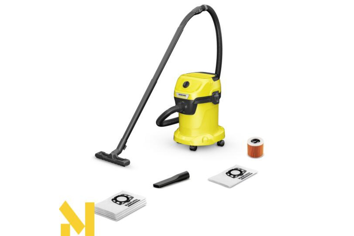 Висока потужність і ефективність при чудовому співвідношенні ціна-продуктивність: господарський пилосос Kärcher WD 3 V-17/4/20 вражає 17-літровим пластиковим сміттєзбірником, 4-метровим кабелем, шлангом, що всмоктує, довжиною 2 м і нерозбірним патронним фільтром.