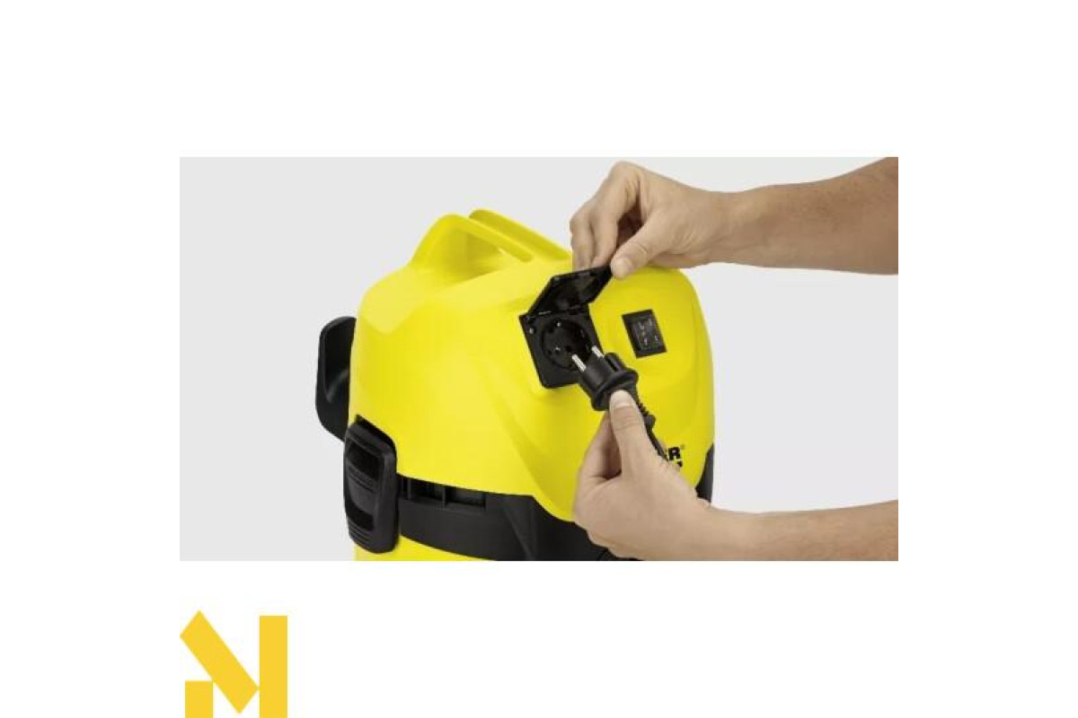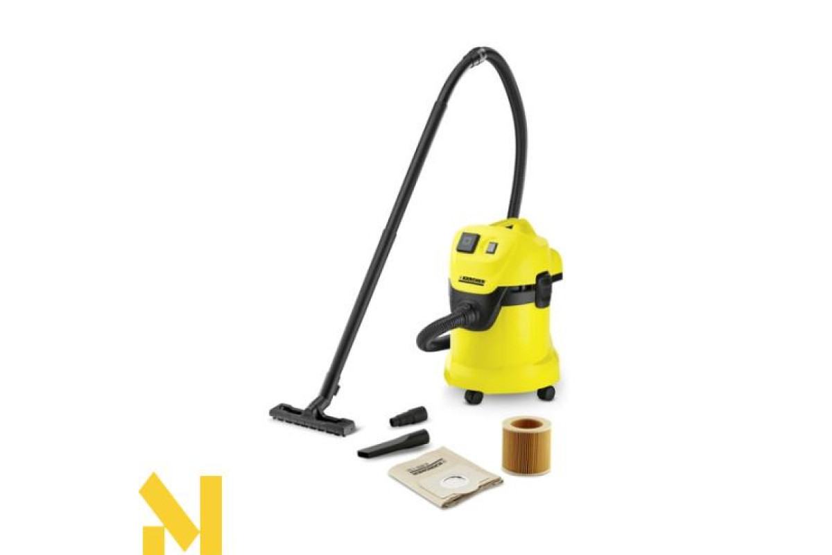 Пилосос WD 3 Р - ідеальний апарат початкового класу покращеного покоління господарських пилососів Kärcher. Споживаючи всього 1000 Вт, він демонструє потужність всмоктування, аналогічну пилососів зі споживанням потужністю 1400 Вт. 17-літровий контейнер дозволяє легко і швидко збирати як великий сухе сміття, так і вологу. Апарат оснащений двома подовжувальними трубками, для підлоги насадкою для вологого і сухого прибирання, патронним фільтром і паперовим фільтр-мішком. Має функцію видування, місце для зберігання кабелю, місце для зберігання аксесуарів і зручну ручку. Додатково оснащений вбудованою розеткою, що дозволяє підключити до нього безпосередньо електроінструмент (також в комплекті йде спеціальний перехідник). Ідеальний помічник для використання в приміщенні і на відкритому повітрі.
