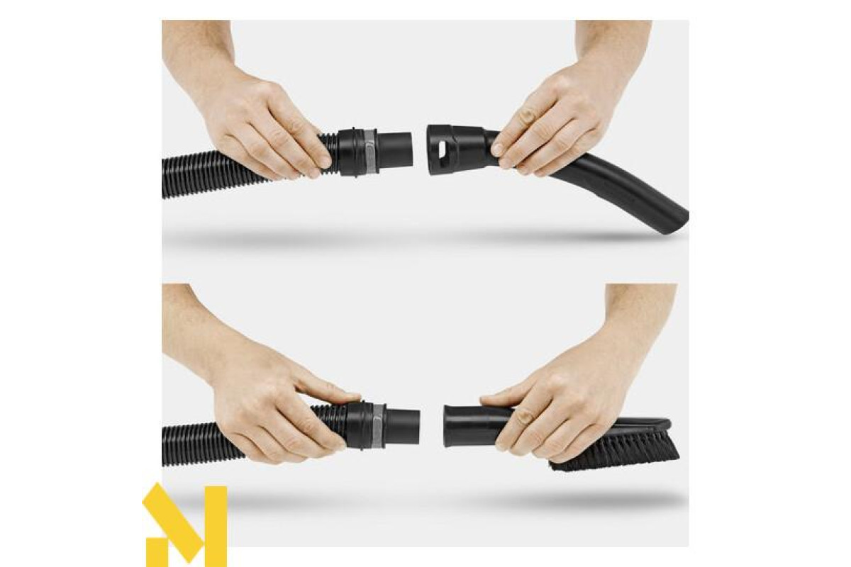 Можливість приєднання насадок прямо до всмоктуючого шлангу. Простота збирання навіть в важкодоступних місцях.