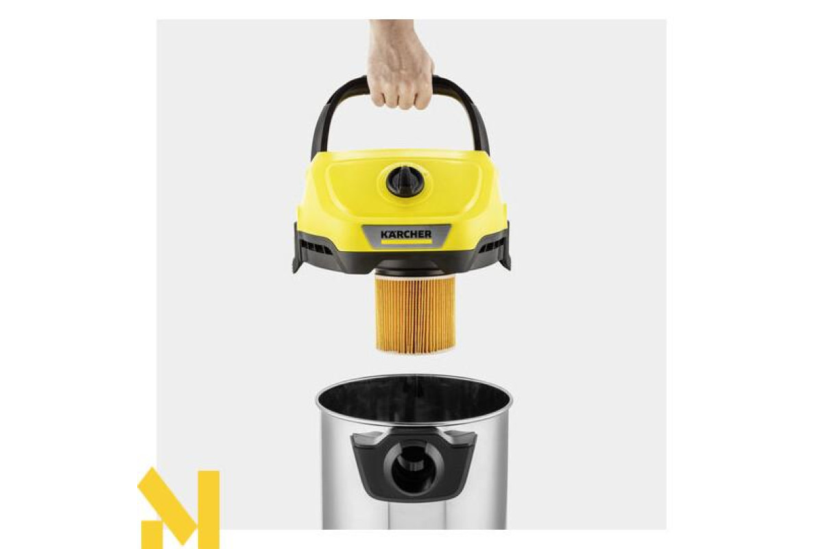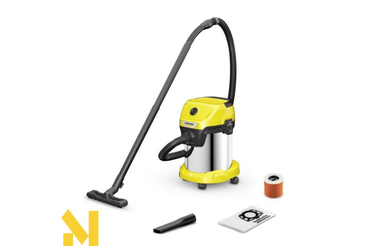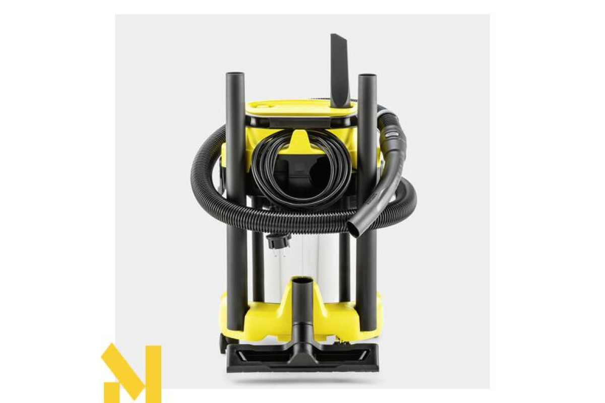 Пилосос WD 3 S V-17/4/20 з 17-літровим сміттєзбірником з нержавіючої сталі, нерозбірним патронним фільтром, 4-метровим кабелем і 2-метровим шлангом, що всмоктує, займає мало місця при зберіганні і поєднує високу силу всмоктування з енергоефективністю.
