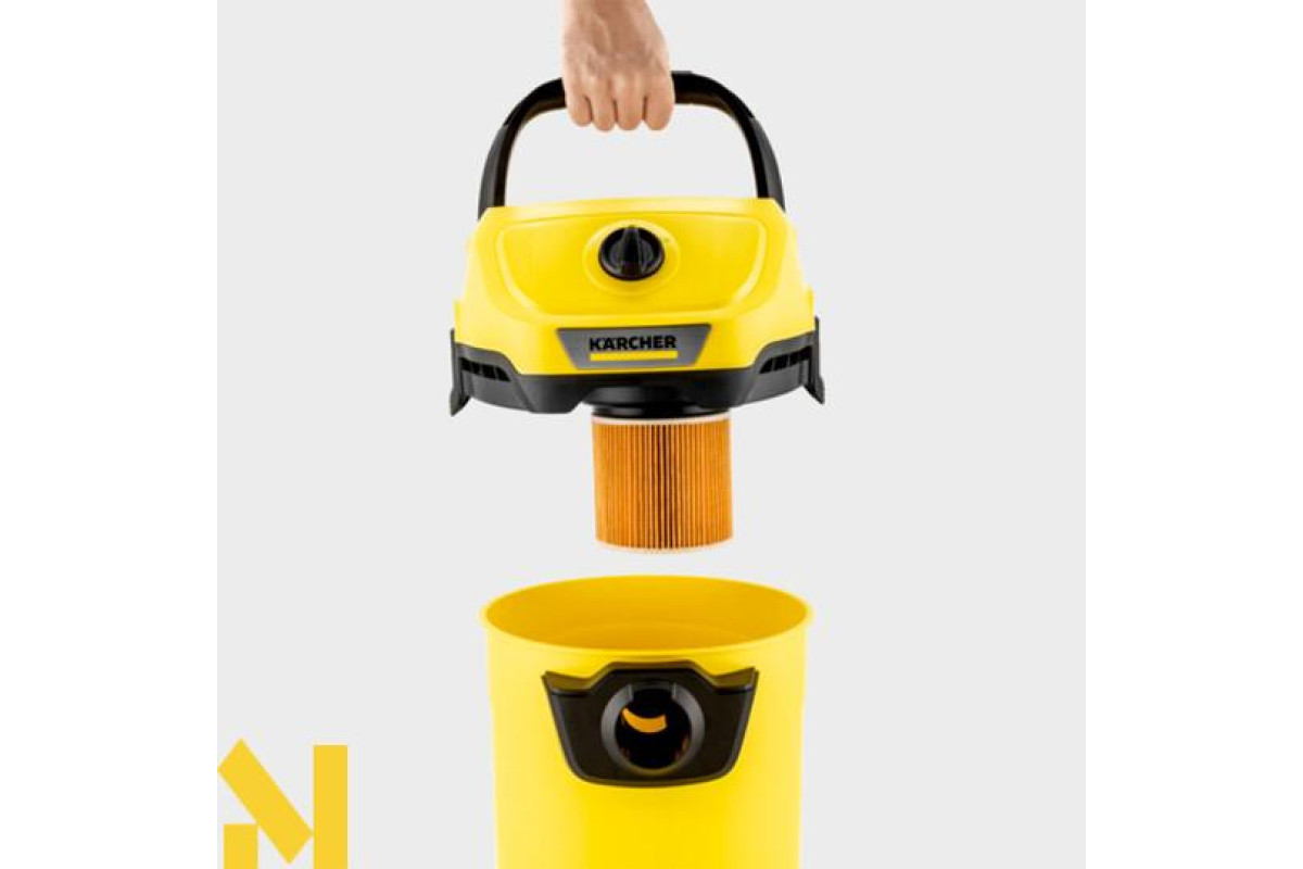 WD 3 V-15/4/20 потужний і енергоефективний, споживаючи всього 1000 Вт. Апарат, а також всмоктувальний шланг і насадка для підлоги Clips ідеально підібрані - для найкращих результатів прибирання сухого, вологого, дрібного або грубого бруду. Пилосос для сухого та вологого прибирання вражає компактним дизайном, міцним пластиковим контейнером на 15 л, кабелем довжиною 4 м, всмоктувальним шлангом довжиною 2 м та флісовим фільтрувальним мішком. Завдяки цілісному картриджному фільтру можна пилососити як вологий, так і сухий бруд без заміни фільтра. Функція видування корисна для прибирання важкодоступних місць. Шланг можна зберігати, повісивши його на головку пилососа, що дозволяє заощадити місце. Кабель можна зберігати на гачку для кабелю, трубки та підлогові насадки - на бампері. Система блокування «Pull & Push» дозволяє легко відкривати і закривати контейнер. Ручку пилососа можна зняти і підключити аксесуар безпосередньо до всмоктувального шланга.
