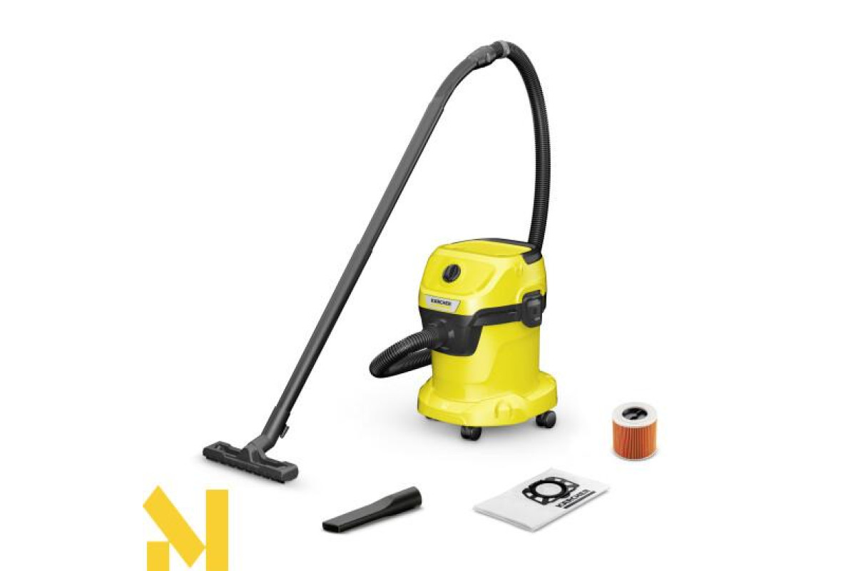 WD 3 V-15/6/20 потужний та енергоефективний із споживаною потужністю всього 1000 Вт. Апарат, а також всмоктувальний шланг і насадка для підлоги Clips ідеально підходять один до одного – для досягнення кращих результатів сухого та вологого збирання, а також видалення дрібного та великого бруду. Пилосос для вологого та сухого прибирання вражає своїм компактним дизайном, міцним пластиковим контейнером об'ємом 15 л, кабелем довжиною 6 м, всмоктувальним шлангом довжиною 2 м та флісовим фільтр-мішком. Завдяки цілісному картриджному фільтру можна пилососити як вологий, так і сухий бруд без заміни фільтра. Функція обдування корисна для прибирання важкодоступних місць. Шланг можна зберігати, підвішуючи його на головку машини, що дозволяє заощаджувати місце. Кабель можна зберігати на гаку, трубках та насадках для підлоги на бампері. Система блокування «Pull&Push» дозволяє легко відкривати та закривати контейнер. Ручку пилососа можна зняти та підключити до аксесуару безпосередньо до всмоктуючого шлангу. Також продумано: інструменти або дрібні деталі, такі як гвинти можна розмістити на головці машини. Ручка для перенесення має ергономічний дизайн.