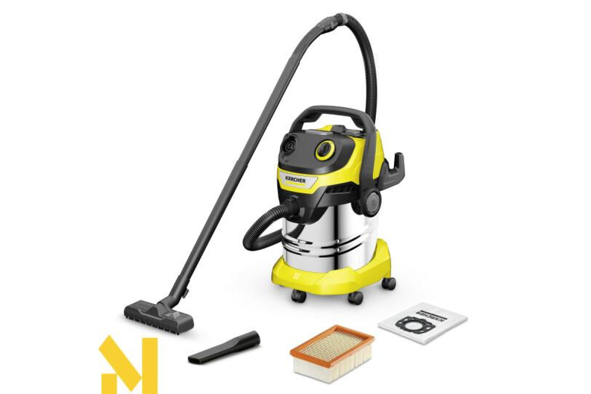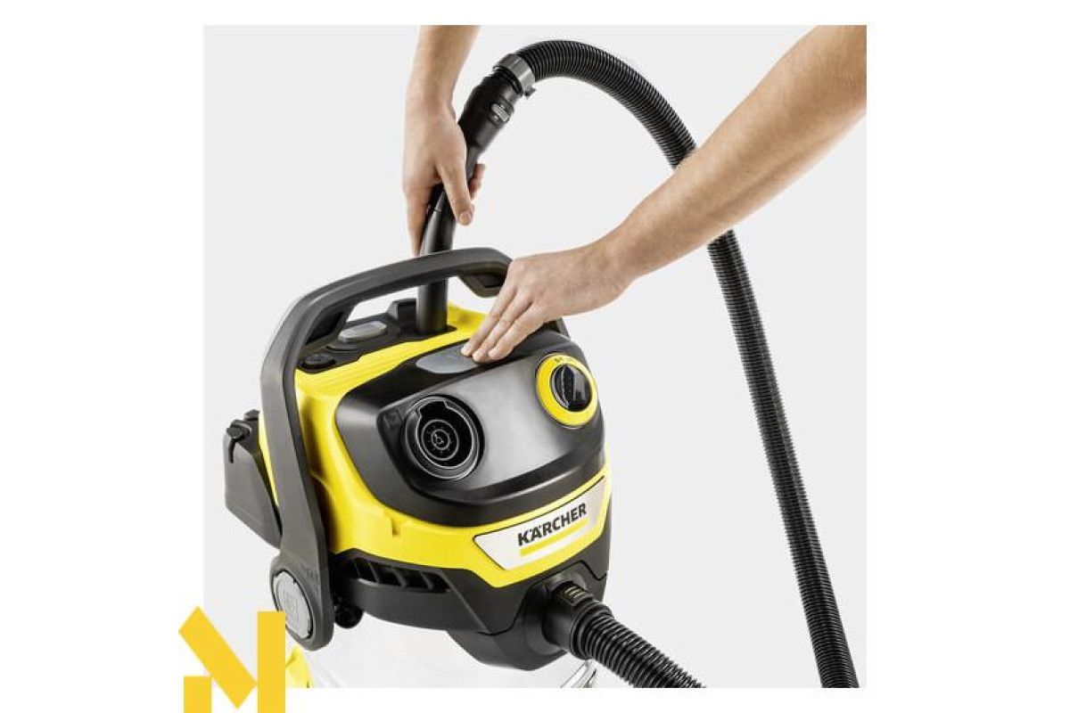 Потужне рішення: господарський пилосос Kärcher WD 5 S V-25/5/22, оснащений 25-літровим сміттєзбірником з нержавіючої сталі, 5-метровим кабелем і шлангом, що всмоктує, довжиною 2,2 м, відрізняється енергоефективністю і колосальною силою всмоктування.