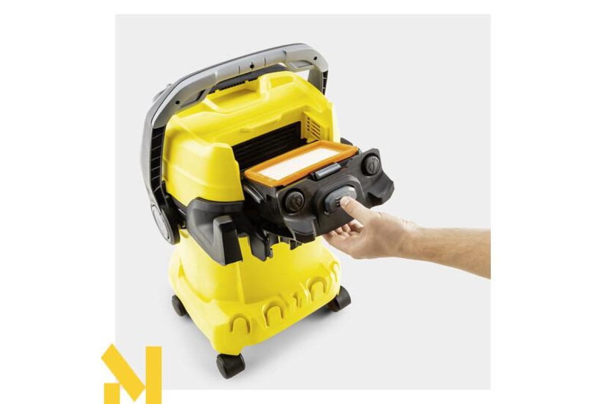 Потужне та енергоефективне рішення для прибирання в будинку та навколо нього: споживаючи лише 1100 Вт електроенергії, господарський пилосос WD 5 V-25/5/22 вражає чудовими результатами збору будь-якого сміття – великого та дрібного, сухого та вологого. Цей апарат оснащений міцним 25-літровим пластиковим сміттєзбірником, 5-метровим кабелем, всмоктувальним шлангом довжиною 2,2 м зі знімною антистатичною рукояткою, насадкою для підлоги, плоским складчастим фільтром і фільтр-мішком з нетканого матеріалу. Плоский складчастий фільтр дозволяє змінювати операції вологого та сухого прибирання без витрат часу на заміну фільтра. Завдяки запатентованій конструкції фільтрувального вузла фільтр може вилучатися за лічені секунди без контакту з брудом. Система очищення фільтра, що активується натисканням кнопки, забезпечує швидке відновлення повної сили всмоктування. Завдяки знімній конструкції рукоятки насадки можуть приєднуватися безпосередньо до всмоктувального шлангу, який може компактно і надійно зберігатися у верхній частині апарату. Для швидкого та зручного закріплення подовжувальних трубок та насадки для підлоги передбачені тримачі, сформовані у відбійнику пилососу.
