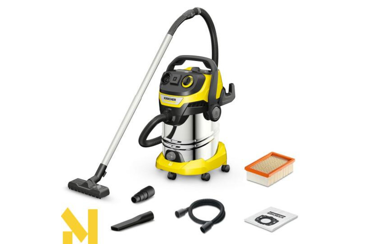 Енергоефективне, надпотужне всмоктування: Пилосос Karcher WD 6 P S V-30/8/35/T досягає найкращих результатів прибирання при споживанні всього 1300 Вт - на всіх типах забруднень, сухих і вологих, дрібних і великих. Пилосос для сухого та вологого прибирання оснащений міцним 30-літровим контейнером з нержавіючої сталі зі зливним гвинтом, 8-метровим шнуром, 3,5-метровим всмоктувальним шлангом з ручкою, трубками з нержавіючої сталі, змінною насадкою для підлоги, плоским гофрованим фільтром та флісовим фільтрувальним мішком. Вбудована розетка з автоматичним вимикачем дозволяє підключати електроінструменти, такі як пилки або шліфувальні машини. Бруд, що утворюється, негайно видаляється за допомогою всмоктування. Поворотний перемикач дозволяє користувачеві регулювати потужність всмоктування відповідно до своїх потреб. Вологий і сухий бруд можна всмоктувати без заміни фільтра завдяки плоскому гофрованому фільтру. Фільтр можна зняти за лічені секунди, уникаючи будь-якого контакту з брудом. Фільтр можна очистити, натиснувши кнопку очищення фільтра. Знімна ручка з електростатичним захистом дозволяє підключати аксесуари безпосередньо до всмоктувального шланга. Додатковими перевагами є те, що всмоктувальний шланг можна компактно зберігати, повісивши його на насадку, а також положення для паркування підлогової насадки.