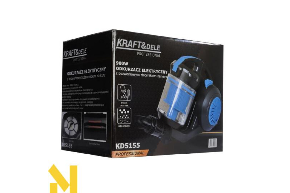 Електричний пилосос без мішка від Kraft&Dele забезпечить ретельне прибирання різних типів поверхонь. Використовується циклонна технологія, яка збирає бруд у контейнер за допомогою обертового руху. Відсутність пакетів означає високу гігієну, постійну потужність всмоктування та нижчі експлуатаційні витрати.