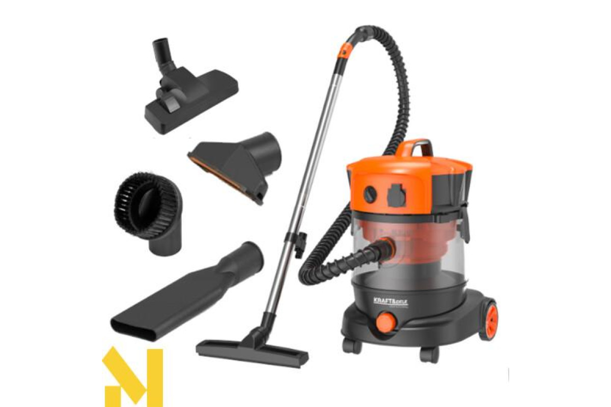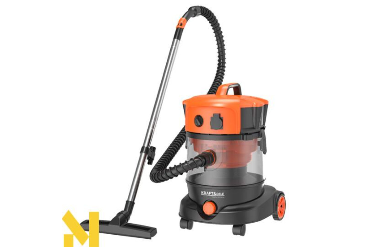 Промисловий пилосос без мішка від польського бренду Kraft&Dele модель KD5156 ідеально підходить для прибирання як сухих, так і вологих поверхонь.