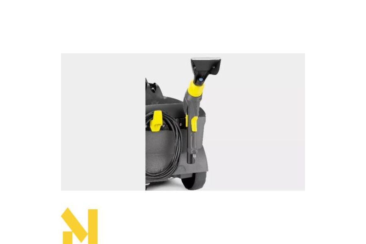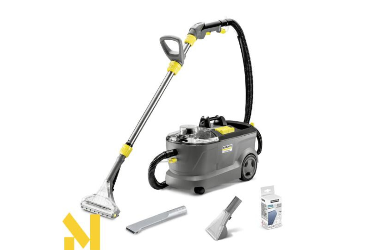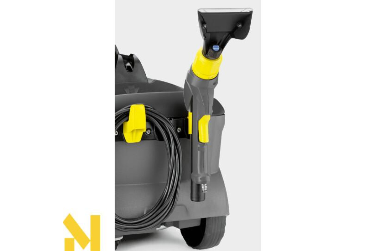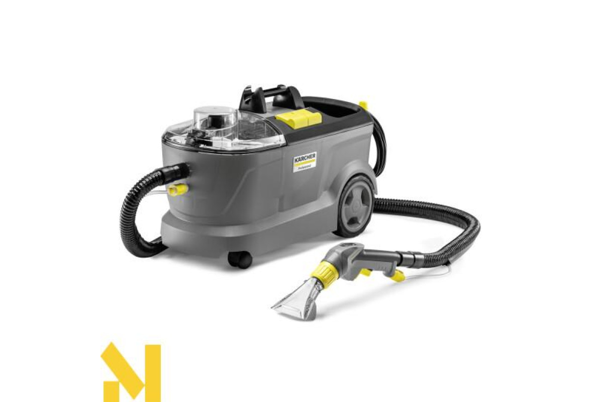 Миючий пилосос Kärcher Puzzi 10/1, що укомплектований насадкою для підлоги і насадкою для м'яких меблів, прекрасно підходить для ефективного гігієнічного прибирання в приміщеннях малої і середньої площі. Цей миючий пилосос з тиском розбризкування 1 бар дбайливо і ретельно очищає текстильні поверхні, зокрема килими і оббивку м'яких меблів. Вузька насадка для підлоги з шарніром забезпечує ефективне прибирання навіть в тісних і заставлених меблями приміщеннях. Апарат забезпечений гаком для підвішування кабелю і фіксатором для закріплення рукоятки і подовжувальної трубки на корпусі.